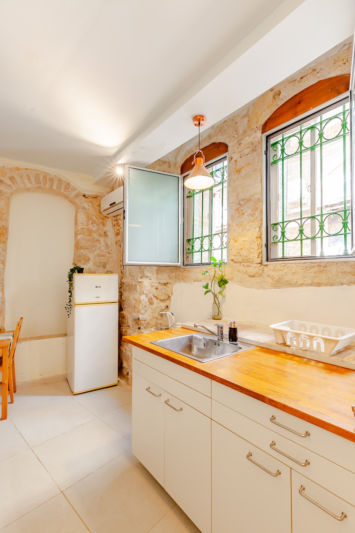 Jedinstven i privlačan studio apartman u srcu Jerusalima sa autentičnim kamenim zidovima koji pružaju istorijsku i prepoznatljivu atmosferu. Stan je podijeljen u dva odvojena prostora, koji nude maksimalnu udobnost na centralnoj i pristupačnoj lokaciji Samo nekoliko minuta hoda od živopisne pijace ispunjene bojama, mirisima i ukusima, lokacija stana nudi jednostavan pristup kulturnim, trgovačkim i zabavnim centrima grada, istovremeno osiguravajući privatnost i spokoj .