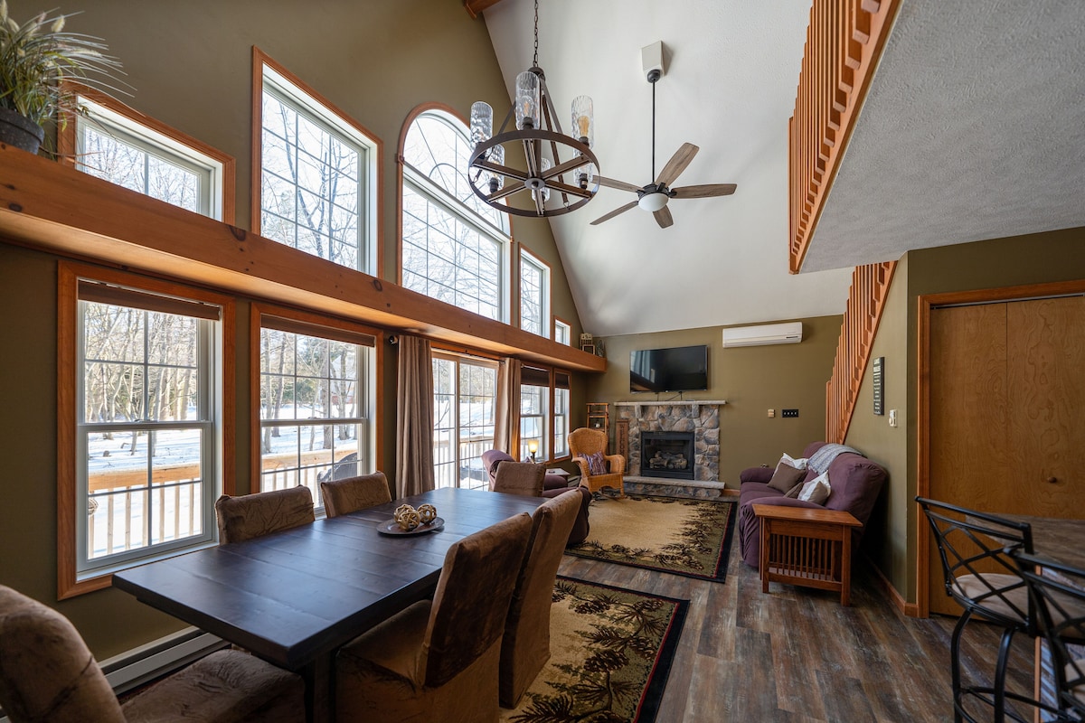 Pobegnite u našu sofisticiranu planinsku kuću sa 4 spavaće sobe u Poconosu, mirno utočište koje spaja rustični šarm sa modernim dizajnom. Savršen za opuštajuće izlete, ovaj dom udobno odgovara vašoj grupi i ima privatnu hidromasažnu kadu, saunu i veliki bazen. Uživajte u potpuno opremljenoj kuhinji i udobnoj peći na drva, sve na kratkoj vožnji od odmarališta Kalahari i lokalnih prodavnica. Čeka vas vrhunski neobičan i opuštajući odmor.