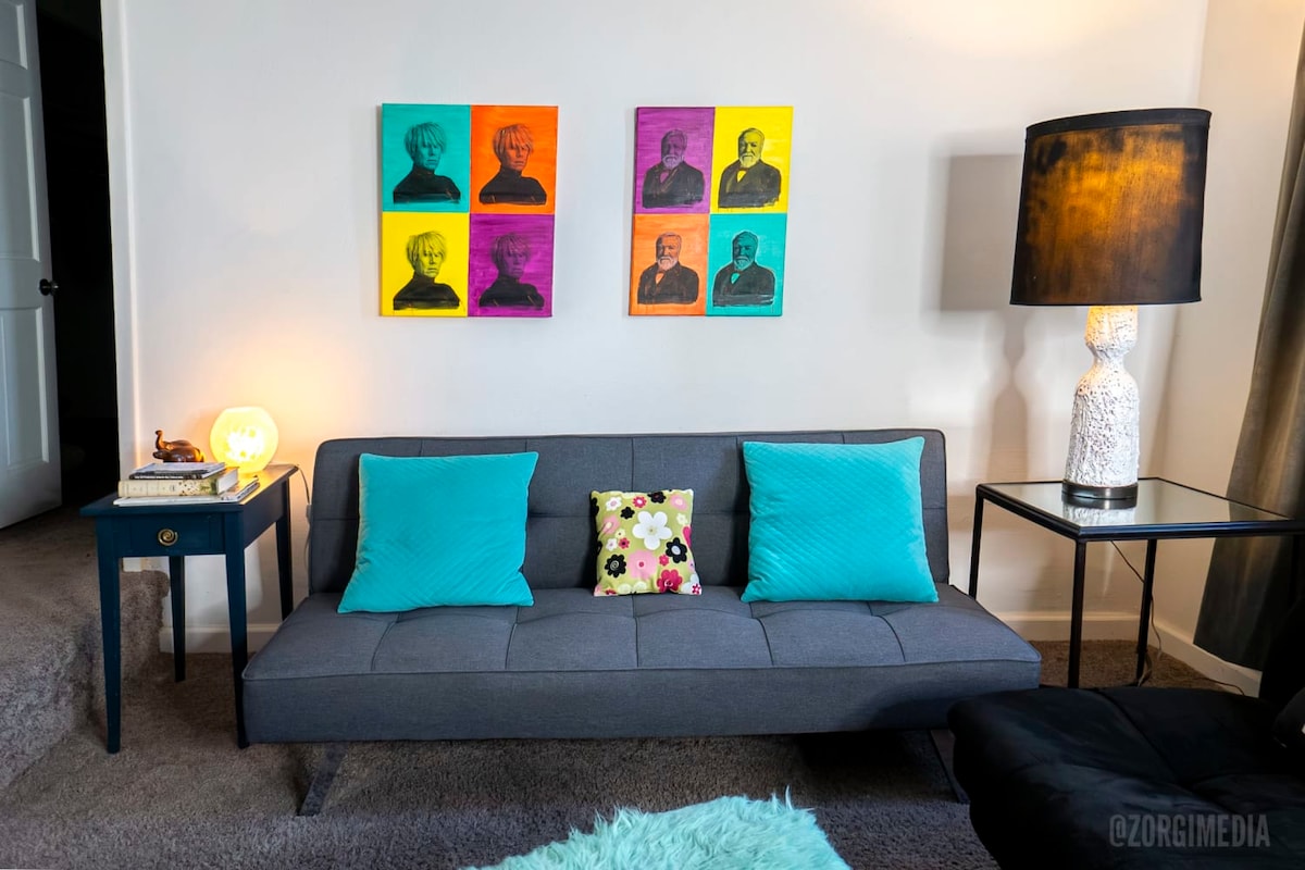 Dobro došli kući u Mt. Vašington! Inspirisan retro restoranima koji čine Pitsburg jedinstvenim, naći ćete starinske i lokalne detalje na svakom koraku u našem novouređenom, svetlom i veselom stanu. Prostrana spavaća soba i dnevna soba pružaju više nego dovoljno prostora za 1-2 osobe. Uživajte u doručku iz naše potpuno opremljene kuhinje, a zatim popijete kafu na našoj prednjoj terasi i uživajte u Netflix-u sa kauča. Naš smeštaj takođe ima jedno mesto za parkiranje van ulice (prava poslastica u Pitsburgu!)