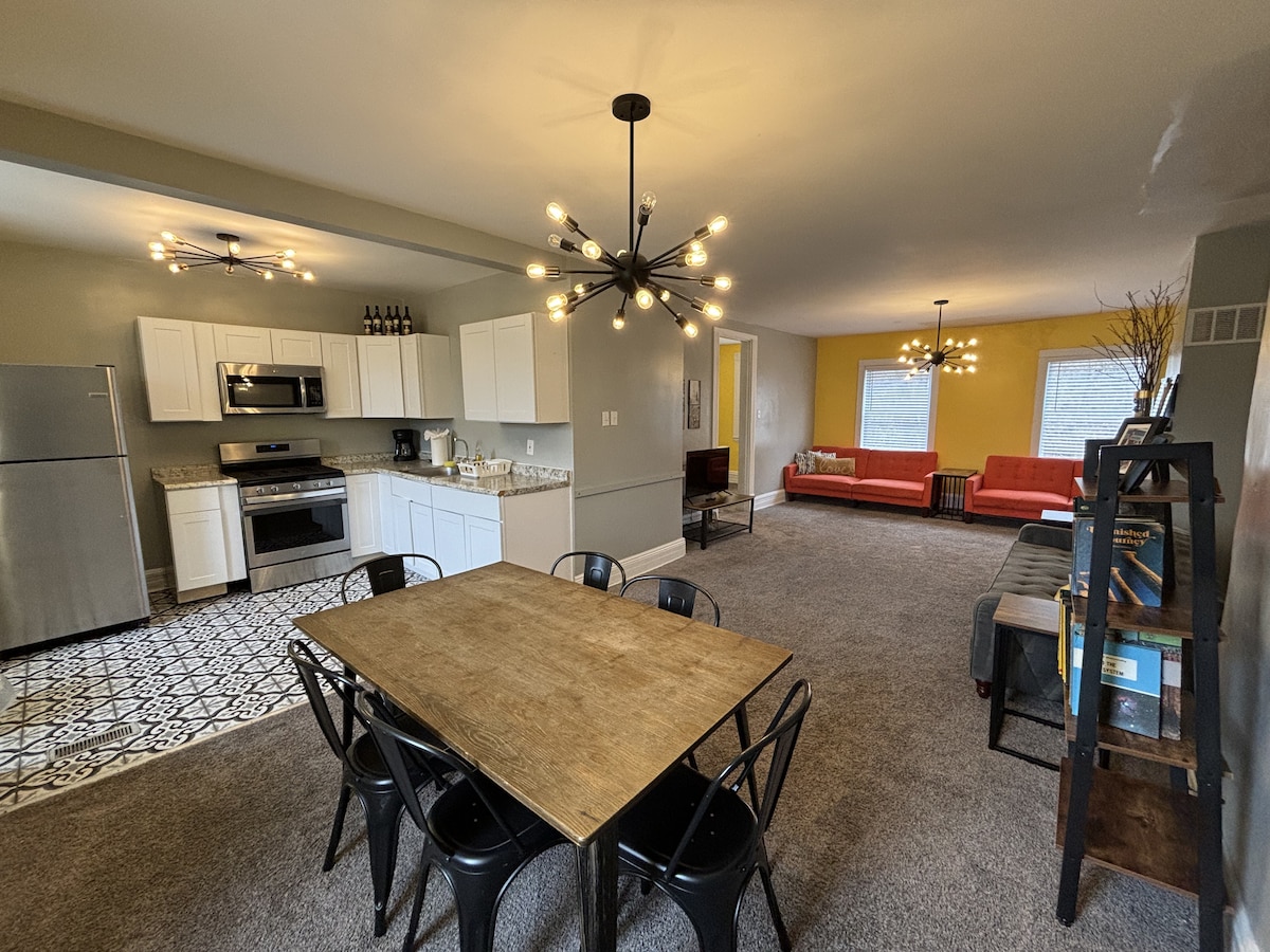 Dobro došli kući u Mt. Vašington! Inspirisani preduzetničkim i industrijskim duhom Pitsburga, na svakom koraku ćete pronaći starinske i lokalne detalje u našem novouređenom ćudljivom elegantnom stanu. Sa tri spavaće sobe, dvije sa bračnim krevetima, imaćete dovoljno prostora da se raskomotite. Uživajte u doručku iz naše potpuno opremljene kuhinje, popijte kafu na našoj terasi i uživajte u Netflix-u sa kauča. Naš smještaj ima i dva parking mjesta izvan ulice (prava poslastica u Pitsburgu!)