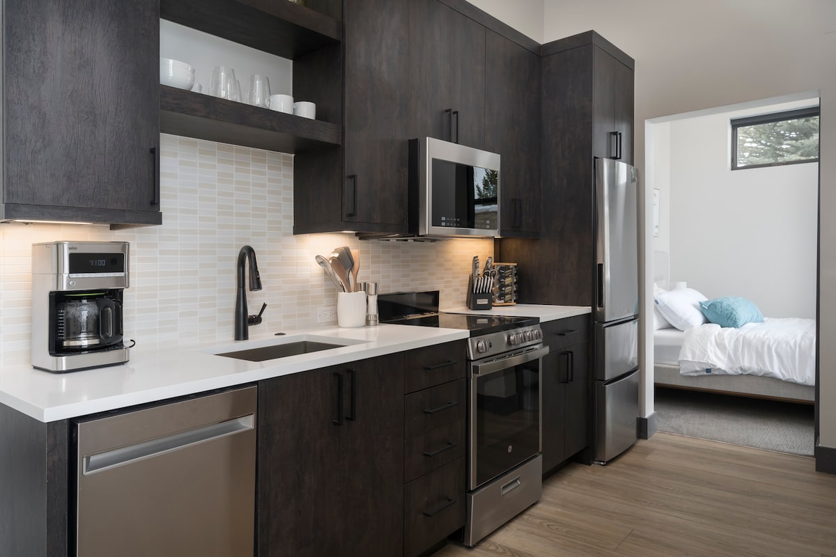 U srcu centra Breka. Ski-In - 4 sata se završava prekoputa. Ski-Out je kratka šetnja do gondole ili besplatnog prevoza. Uživaćete u luksuznoj brvnari i pogledu... sa pogledom na reku i grad...i izlazak sunca iznad planina. Ovaj stan ima elegantne sastanke od poda hikorije do čvrstih vrata do prilagođene kuhinje; nijedan detalj nije promašio kako bi se ovo osećalo kao planinska brvnara sa elegantnim šarmom.