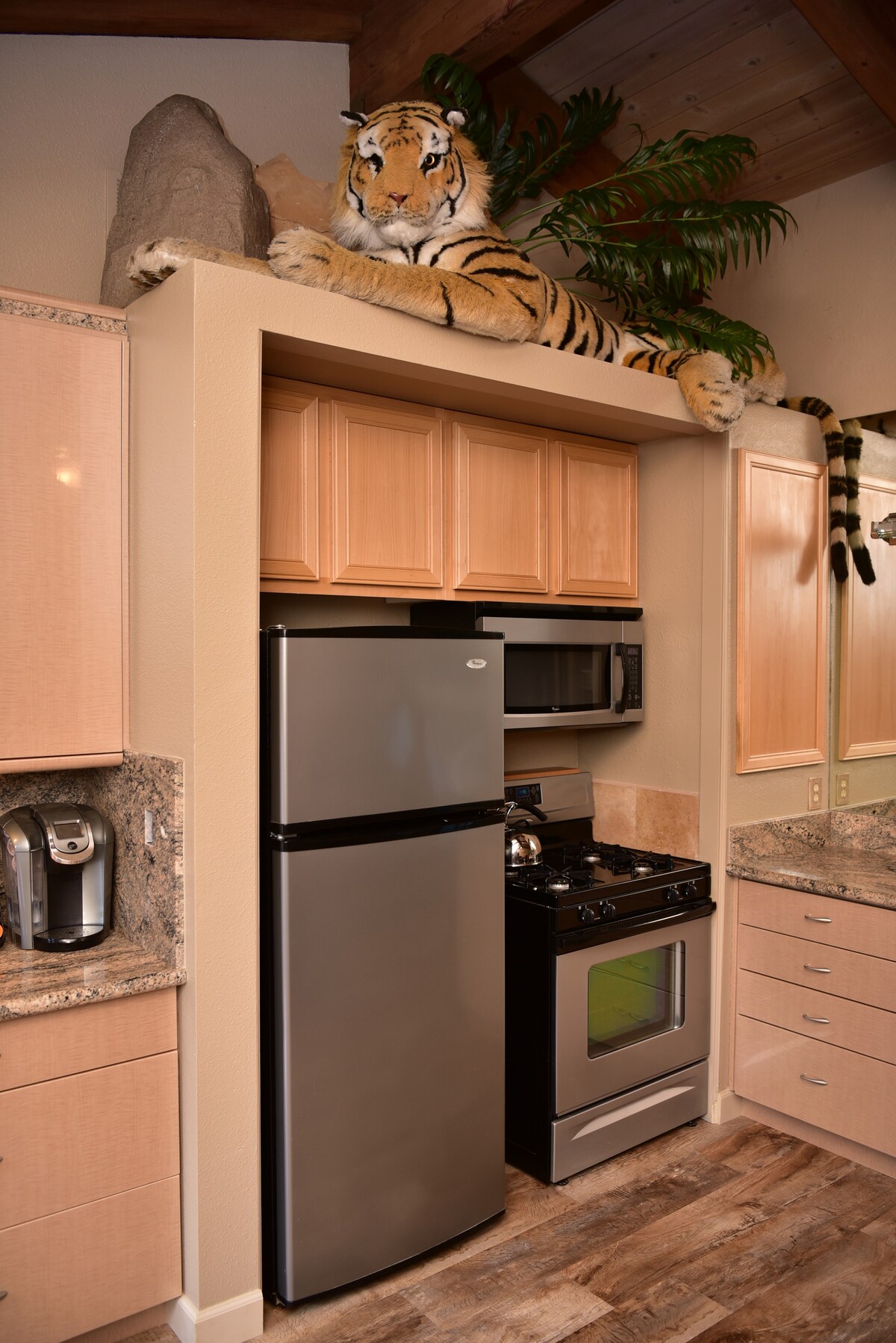 This newly remodeled Safari Cabin is your ticket to a relaxing vacation in the exciting Southern California area. The large master suite and living space with kitchen sleeps 4, with 1 queen bed , 1 queen sofa bed. The Cabin sits on the backside of our house. You will have a private locked entrance and parking for one vehicle in front and another space past our driveway.