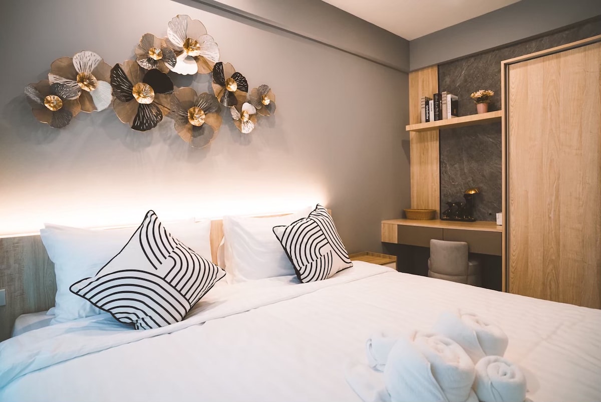 Dobrodošli u apartman Botanica Khaoyai sa pogledom na planine. Soba je dizajnirana za vašu udobnost u pratnji 4 gosta (sa bračnim krevetom, malim krevetom i dodatnim kaučem/ dušekom. Soba ima ukupnu površinu od 64 kvadratna metra, sa besplatnim parkingom u sklopu objekta i bežičnim pristupom internetu. Naš objekat nudi niz sadržaja, uključujući potpuno opremljen fitnes centar, blistavi bazen u sklopu objekta i privatni balkon sa spoljnim tušem. ** Zabranjeno pušenje - zabave nisu dozvoljene **