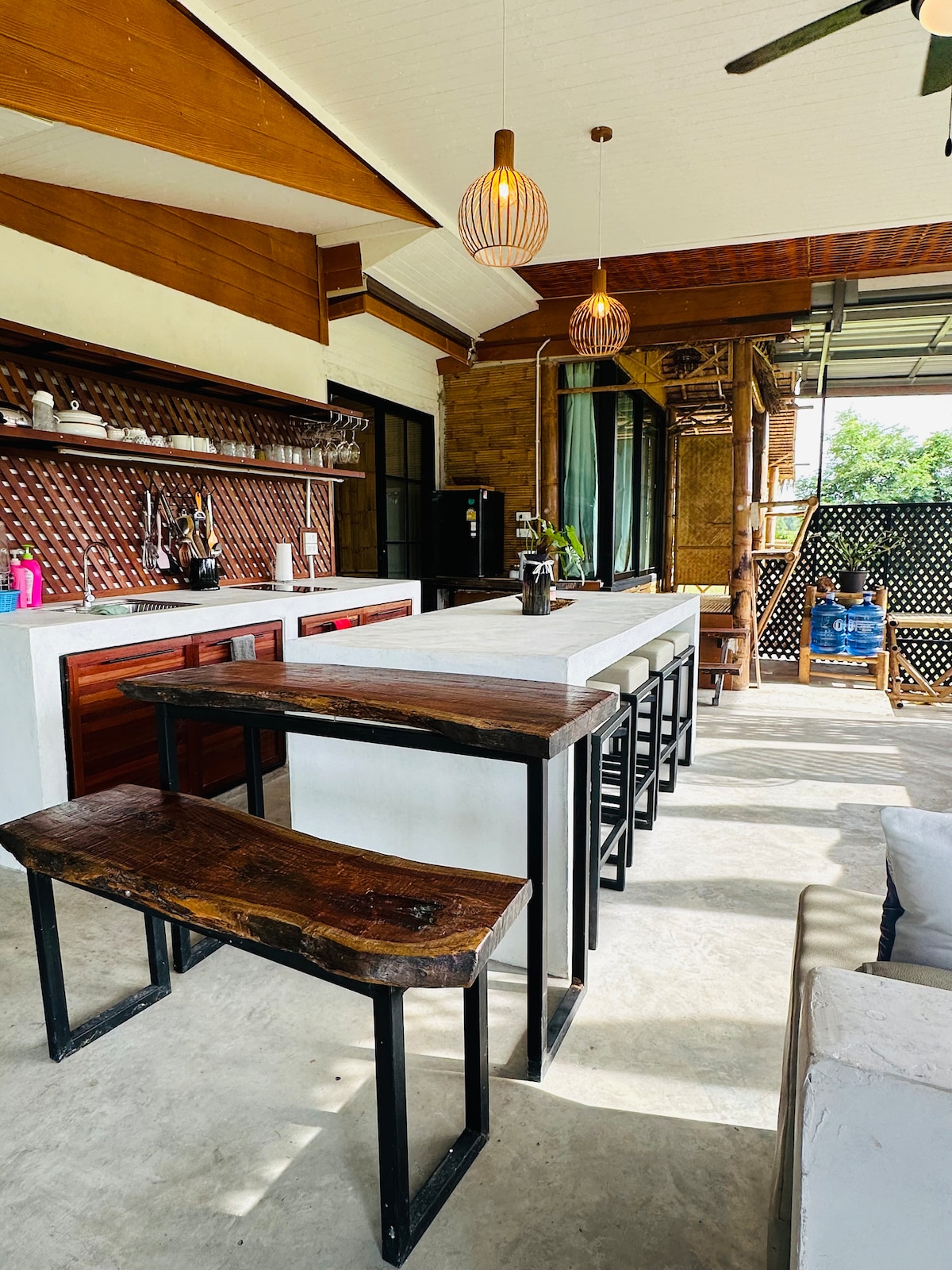 บ้านที่เต็มไปด้วยความเงียบสงบ และพื้นที่ใช้สอยที่จะใช้ทำกิจกรรมในที่โล่งแจ้ง มีบริการอาหารท้องถิ่นจากคนท้องถิ่น