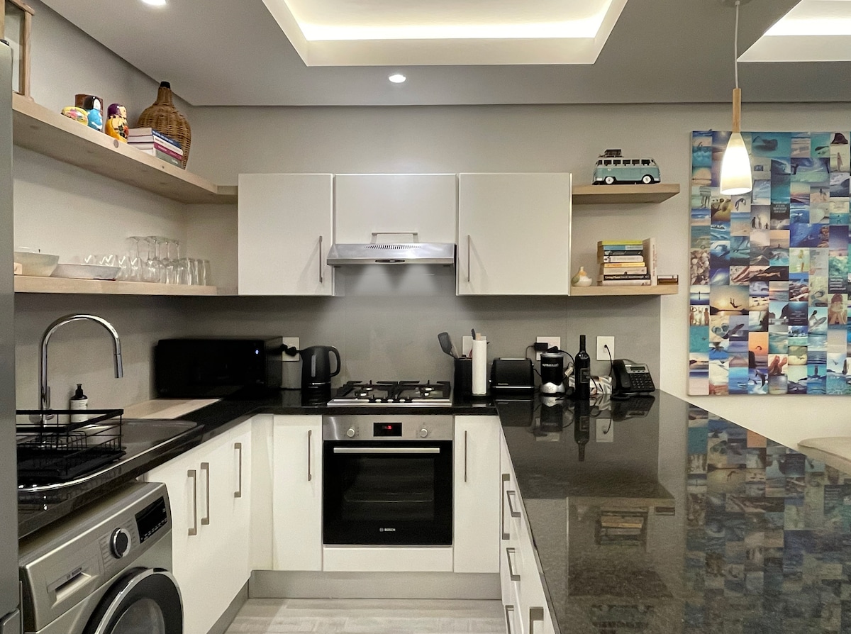 Spindrift je spektakularan! Izgrađen 2016. godine po strogim standardima, pažljivo je dizajniran i pažljivo namješten. Pristup je moguć stepenicama ili uspinjačama (odlično za prtljag!) Spindrift je dovoljno uzdignut da ima pogled na more od 180°, dovoljno da bude miran, a ipak dovoljno blizu da se može prošetati do luke, plaža, kafića i restorana po kojima je Kalk Bej poznat. Vinske farme, tereni za golf i lokacije velikih karata - Table Mountain, Kirstenbosch i ostrvo Robben - lako se pristupa.