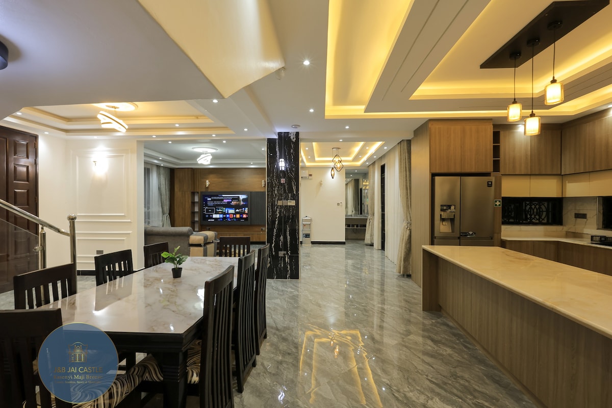 J&B Jai Castle give you a complete relaxation and peace of mind with the whole family. You will experience luxury, seamlessness, security and memorable experience. The property features 5 specious self-contained bedrooms with office space each. Hot water, DSTV, WiFi, power back-up solar, swimming pool, security guards and electrified fence, constant water, etc. It also have 3 specious bedroom boys Quarter one self-contained and two sharing bathroom and toilet. Surrounded by Beaches, zoo, etc.