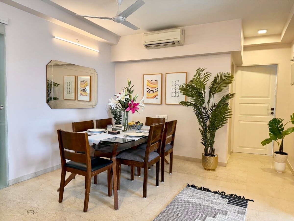 Dobro došli u BKC Executive Suite, gdje se elegancija susreće sa praktičnošću u kompleksu Bandra Kurla u Mumbaju (BKC). Savršen za rukovodioce, posjetioce ambasade i putnike u slobodno vrijeme, naš luksuzni stan ima brzi Wi-Fi, namjenski radni sto, potpuno opremljenu kuhinju i vešeraj u jedinici. Uz bezbjednost non-stop, naša vrhunska lokacija nudi jednostavan pristup restoranima, kupovini i kulturnim znamenitostima. U blizini američkog konzulata i međunarodnog aerodroma u Mumbaju. Rezervišite sada za luksuzan odmor!