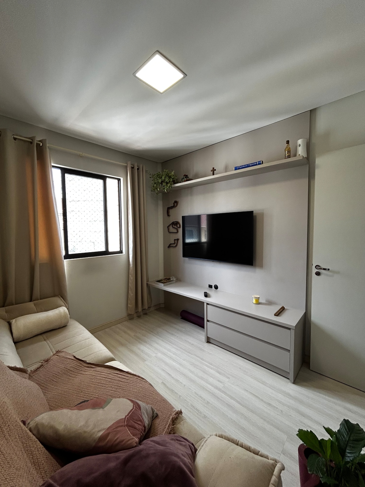 Quarto aconchegante em apartamento amplo em condomínio seguro.