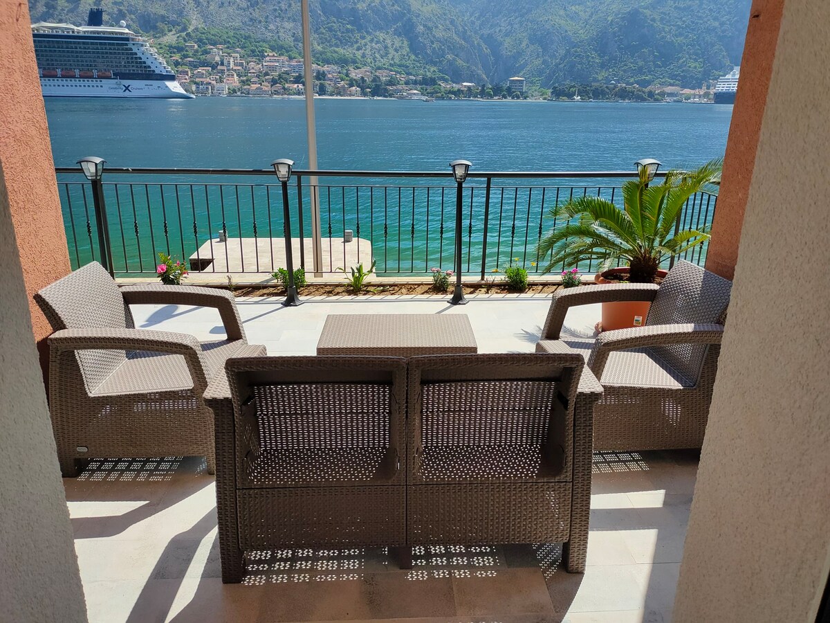 Predivan stan sa sjajnim pogledom na zaliv Boka i Kotor. Stan je moderno namješten, ima terasu idealnu za opušten boravak sa odličnom lokacijom. Plaža je udaljena 50 metara od objekta. Nalazimo se na 1,4 km od Starog grada;odlazak u Prcanj. Bolnica,policija i pošta su udaljeni 300 metara. Hvala su u Starom gradu. Najbliži supermarket je udaljen 300 metara. Aerodromi su na udaljenosti od: Tivat-7km, Podgorica-90km ,Kilipi(Hrvatska) -70 km. Dobro došli , Kotor je živa istorija u spektakularnom zalivu