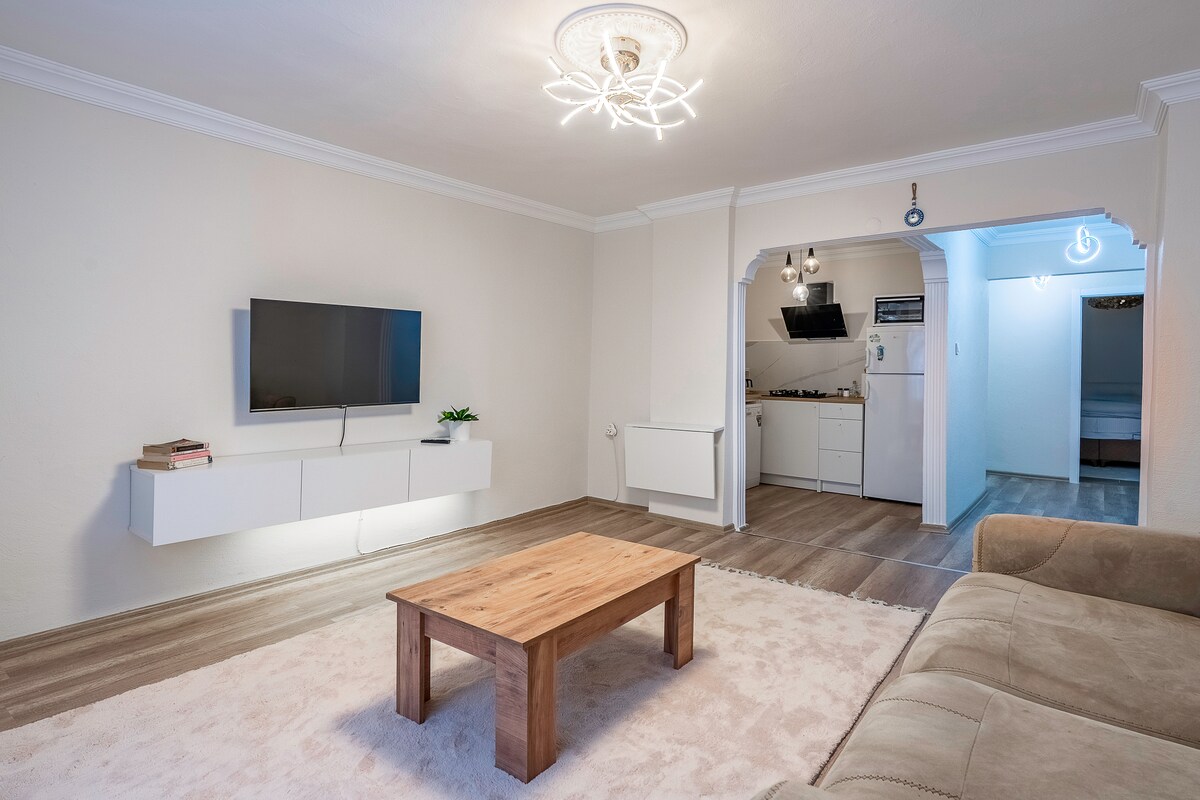 Moderan i nedavno renoviran jednosoban stan u Muratpaši, Antalija. Samo 100 m do tramvaja, pešačka udaljenost do Starog grada Kaleići, plaže Konjaalti. Idealno za 2 gosta. Mirna, centralna lokacija i prijatno hladno leti. Uključeni su potpuno opremljena kuhinja, mašina za pranje veša, mašina za pranje sudova, brz Wi-Fi, pametni TV, klima-uređaj, čista posteljina i toaletne potrepštine. Jednostavan pristup kafićima, restoranima i javnom prevozu. Polusuterenski stan.