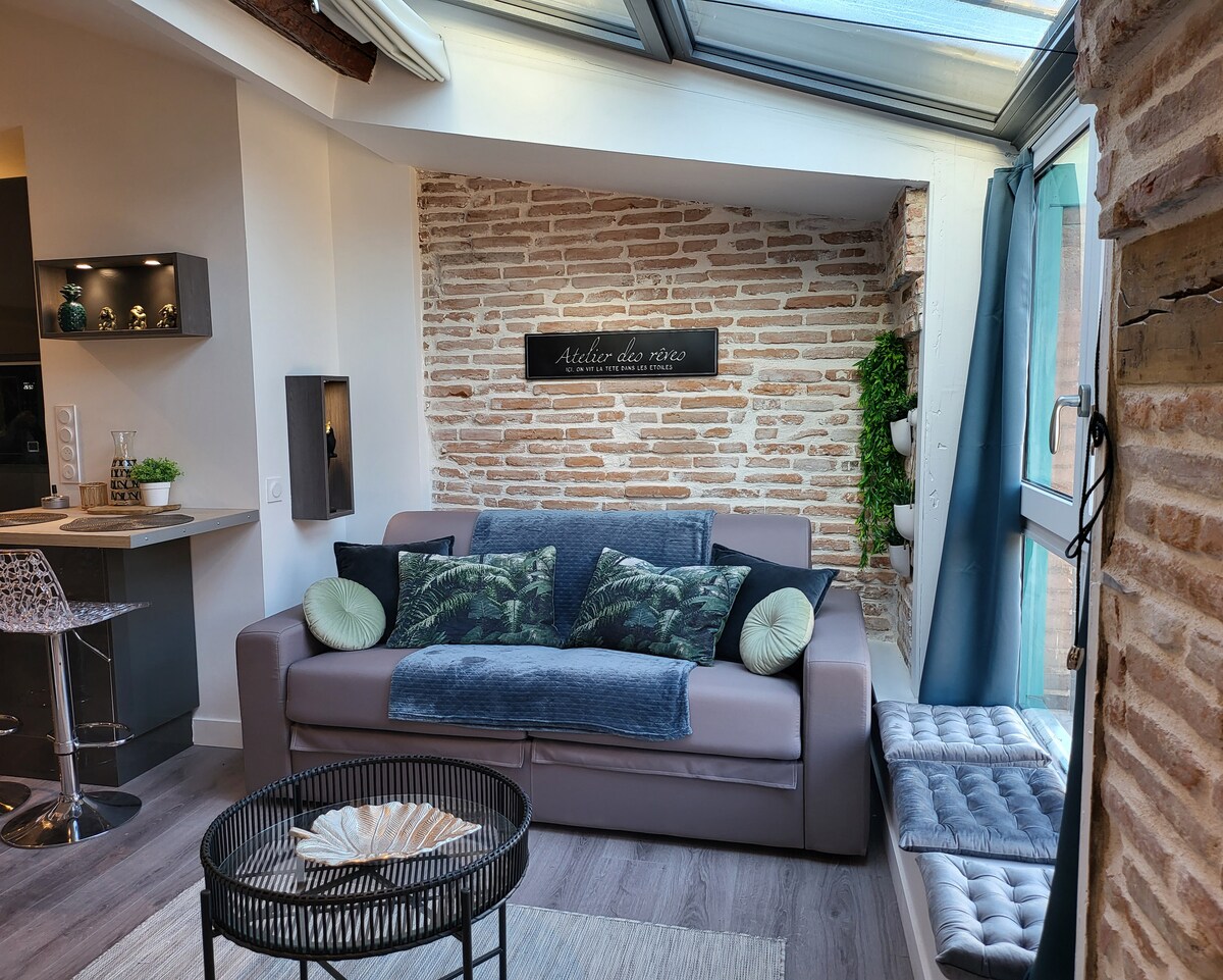 Bienvenue à" l atelier des rêves". Studio dans l' hyper centre ville de Montauban , dans un immeuble classé au patrimoine de France Appartement climatisé au pied de la place Nationale Entrées autonome avec boîte à clés Devant l entrée de l appartement se trouve un palier disposant de 2 fauteuils et d une table basse. Pour le respect du voisinage merci de ne pas faire de bruit dans les parties communes INTRODUCTION DE FUMER DANS L APPARTEMENT