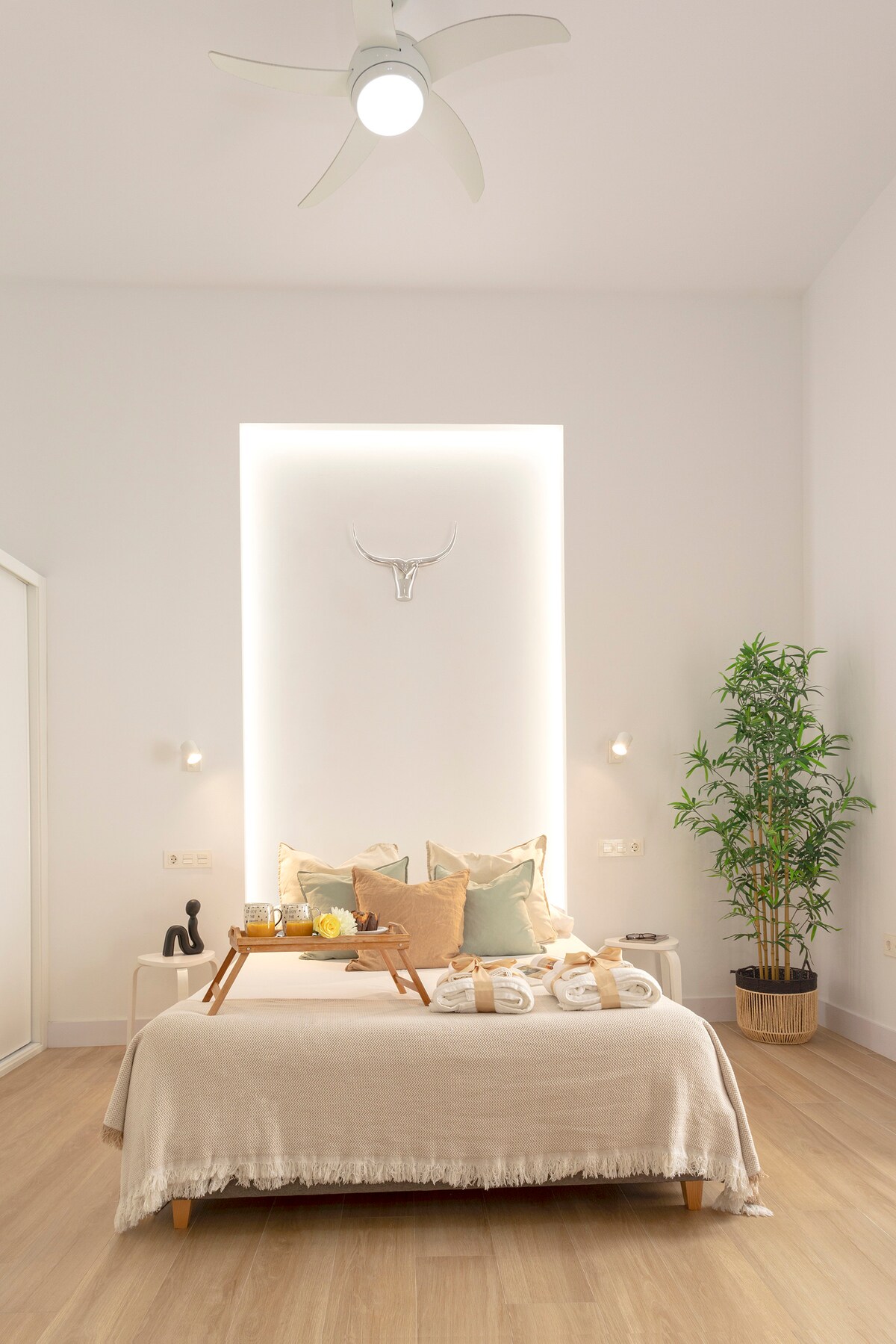 Ovaj potpuno novi uređeni apartman u centru Malage savršen je za rad na daljinu ili odmor! Autentični visoki španski plafoni brinu o mnogo svjetla, a moderan namještaj daje kući svu udobnost koja vam je potrebna! The Swiss Sence hotelbed is as comfi as a 5 star hotelbed and the small terrace in the daily is perfect for morning coffee and the shared rooftop ideal for a coffee or sandwich in the sun! Najbolji izbor u Malagi!