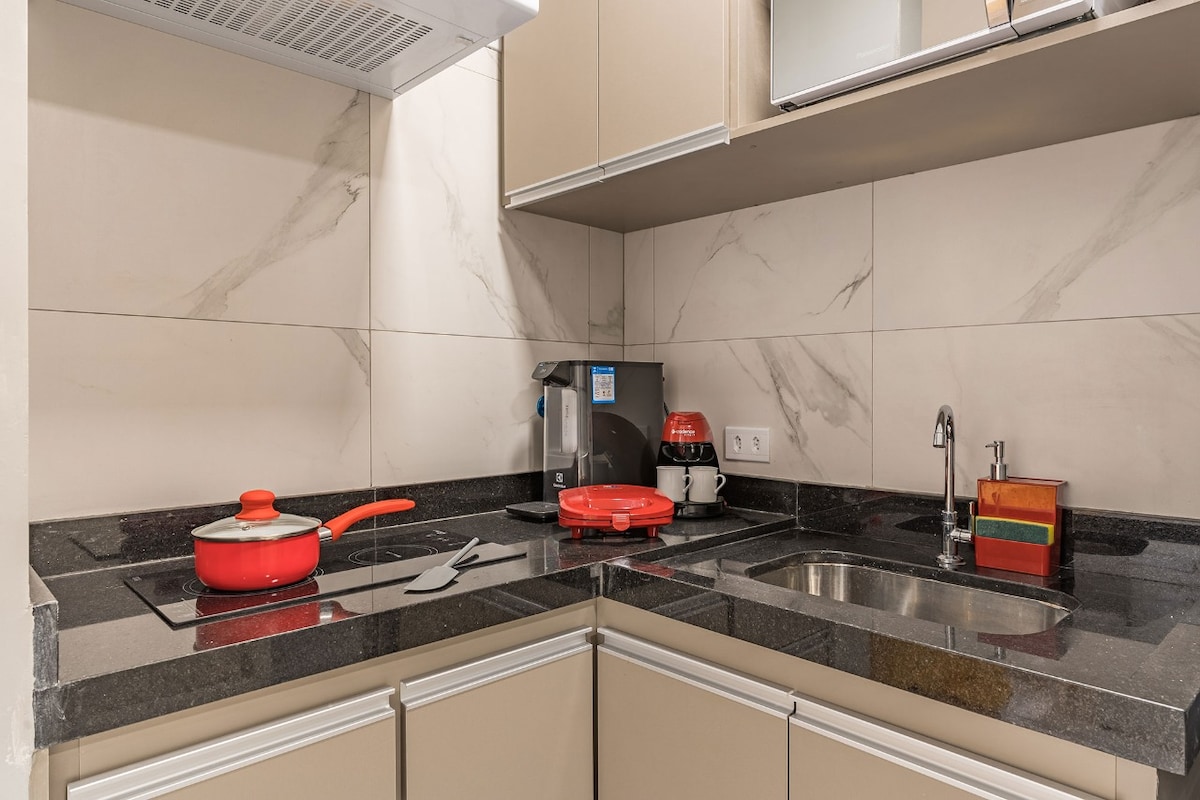 Uživajte u boemskoj i umetničkoj vili Madalena, punoj barova, restorana i kafića. Možete da upoznate region ili čak da odete u obilazak gradskih parkova biciklom, koji je dostupan besplatno. Hoćete li doći na posao? Fokusirajte se na njega za raznovrsnim stolom okrenutim prema zelenom balkonu sa prelepim pogledom na vrhove drveta. Na kraju krajeva, uživajte u teretani, zagađenju, sauni i sobi za pauzu za potpuno slobodno vreme.