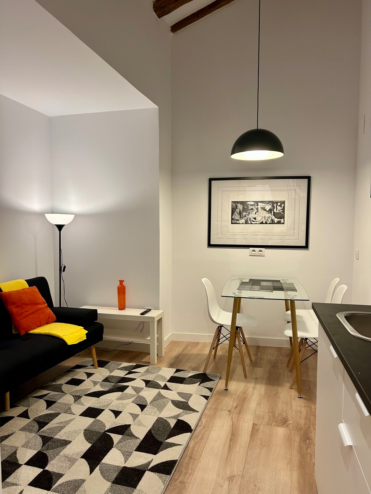 Veličanstven stan od 45 kvadratnih metara u srcu Madrida. Sa spektakularnim dizajnom i dekoracijom, prostranim prostorima i visokim plafonima, stan je opremljen svime što vam je potrebno za boravak u Madridu. Dnevni boravak ima tri balkona s pogledom na ulicu koji pružaju veliku osvijetljenost stanu. Spavaća soba ima sopstveno kupatilo i radni sto. Od stana možete prošetati do skoro svih legendarnih tačaka Madrida.