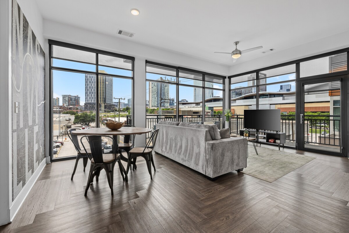 Nashvilleurbanretreats predstavlja ovaj prostrani dvokrevetni kupatilo, koje je dizajnirao najbolji dizajner Nešvila. Klizna vrata vode do najveće spoljne terase sa roštiljem u ovoj zgradi lifta. Terasa ima uređen prostor za objedovanje i zabavu na otvorenom sa nekoliko zabavnih igara na otvorenom koje možete da opustite prije nego što odete u centar Nešvila, koji je udaljen 15-20 minuta hoda. Zabavite se i pozirajte ispred murala koji je napravio jedan od naših omiljenih muralista u Nešvilu, kao i kul neonskog anđela.