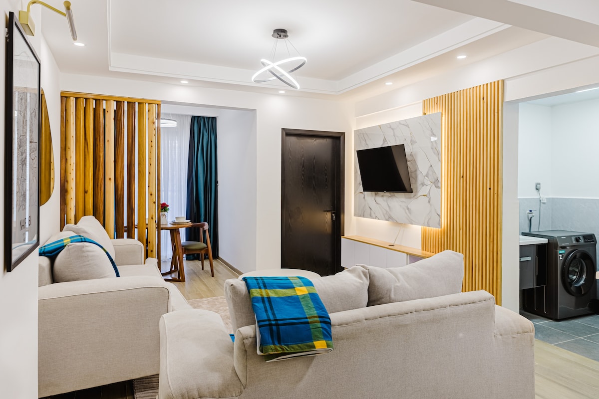 Uđite u udoban dvosoban stan, idealan za porodice, parove ili poslovne putnike. Uživajte u udobnim krevetima, vrhunskoj posteljini i mnoštvu prostora za odlaganje za opušten boravak bez nereda. Pijuckajte kenijsku kafu na privatnom balkonu, opustite se uz Netfliks nakon dana provedenog napolju ili ostanite produktivni uz brz Wi-Fi i potpuno opremljenu teretanu. Nalazi se u živopisnom Kilimaniju, na samo nekoliko minuta od centra grada, vrhunskih restorana i gradskih atrakcija. Bilo da istražujete ili se odmarate, ovaj prostor nudi savršeno utočište.