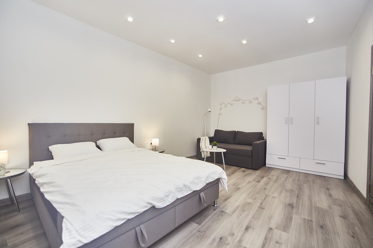 Наше помешкання створене для комфортного відпочинку. Воно розташоване у новому стильному будинку з сучасним інтер’єром, швидким Wi-Fi, кондиціонером і рециркулятором повітря, ванна кімната з феном, пральною машиною і електричною сушкою для рушників. У цій просторій оселі вся ваша сім’я зможе чудово провести час. В помешканні два великих телевізора 43 дюйми, витяжка, духова і мікрохвильова печі, чайний набір, повний набір посуду, холодильник з морозильною камерою, халати, гігієнічні набори.