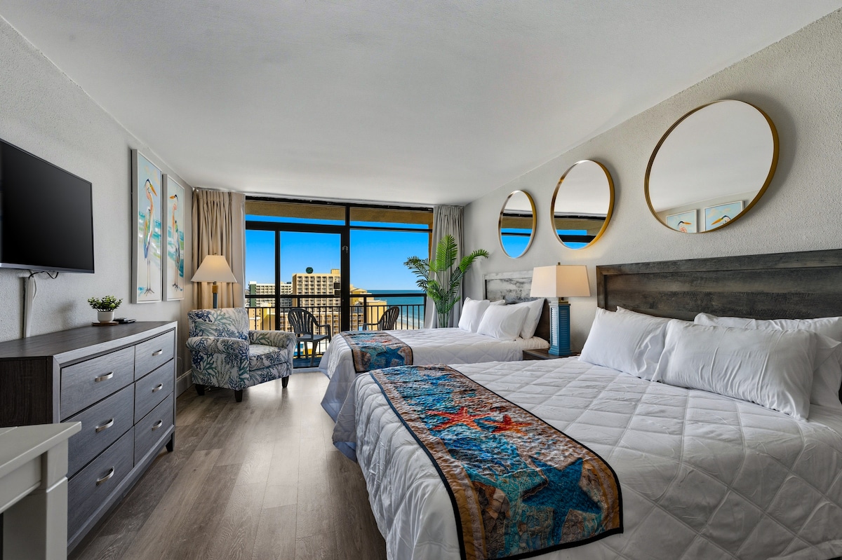 Svideće vam se ovaj novouređeni stan na gornjem spratu sa 2 kreveta, 2 kupatila sa pogledom na okean! Myrtle Beach Resort se nalazi na samoj plaži i dovoljno je daleko od gužve u Mirtl Biču, ali dovoljno blizu svih atrakcija. Odmaralište od 33 hektara ima sve, od bazena i bara uz okean, unutrašnjih bazena i hidromasažnih kada, dečijih bazena sa lijenom rekom, igrališta, teniskih terena, saune, teretane, terase na krovu i još mnogo toga! Samo 5 minuta do aerodroma i 10 minuta do centra Mirtl.
