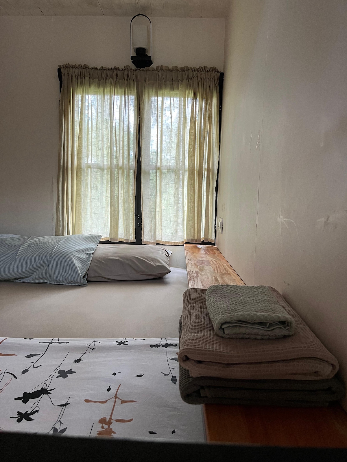 The Little Flower estate is a garden nestled in the forest of south Coorg. Imamo dvije seoske kuće. Seoska kuća br. 1 ima dvije spavaće sobe i zajedničku verandu. Može da ugosti do pet gostiju. Koliba je okrenuta prema imanju, vrtovima i poljima. Seoska kuća br. 2 ima veliki dnevni boravak sa dvije spavaće sobe. Može da primi do pet gostiju. Dnevna soba je okrenuta prema logorskoj vatri i dvorištu, rezervoaru i rijeci Lakšman TERTA. Međutim, boravak će u svakom trenutku moći da dijeli samo jedna grupa gostiju.