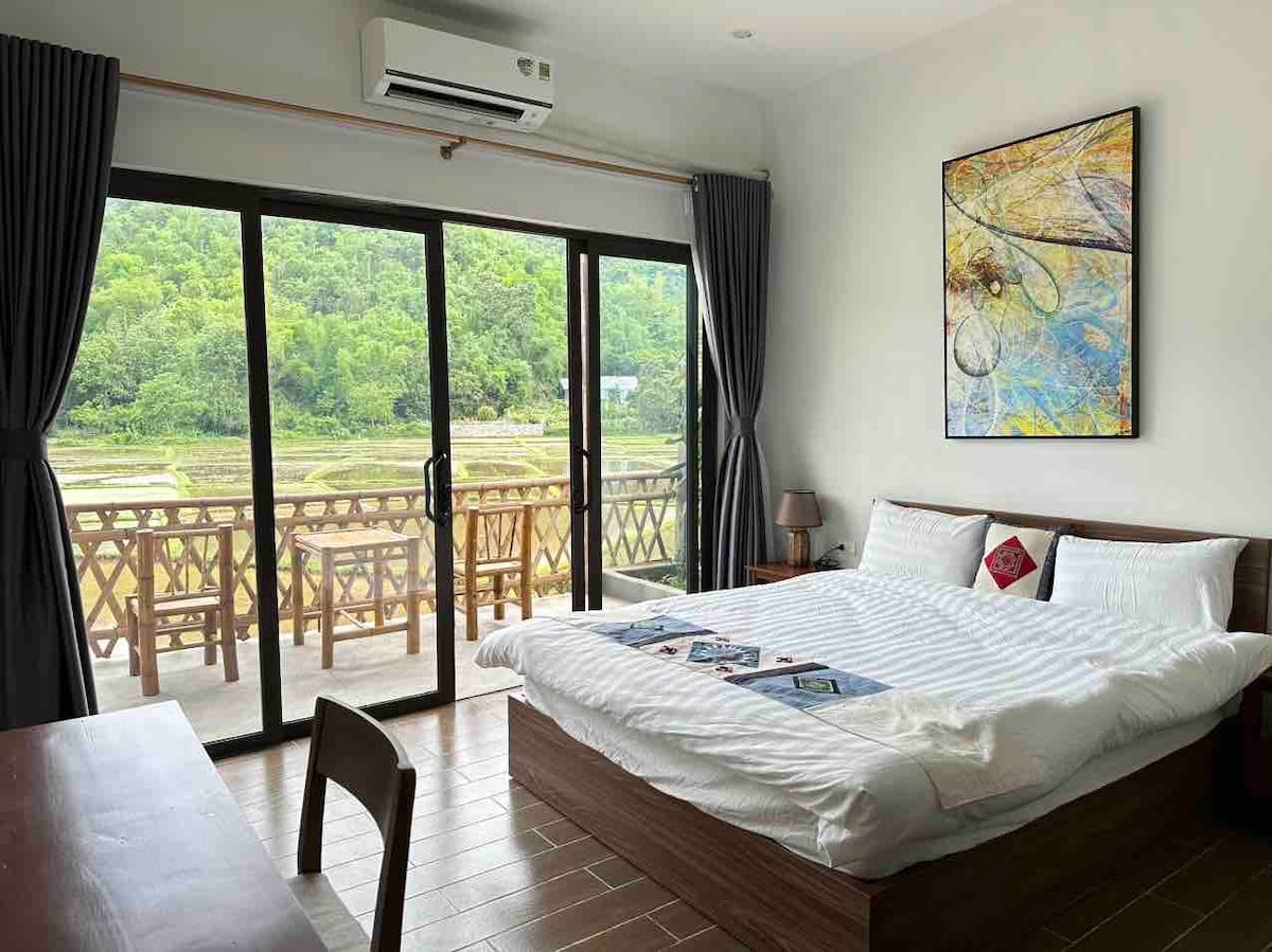 Mai Chau Eco Homestay porodična soba pogled na planinu