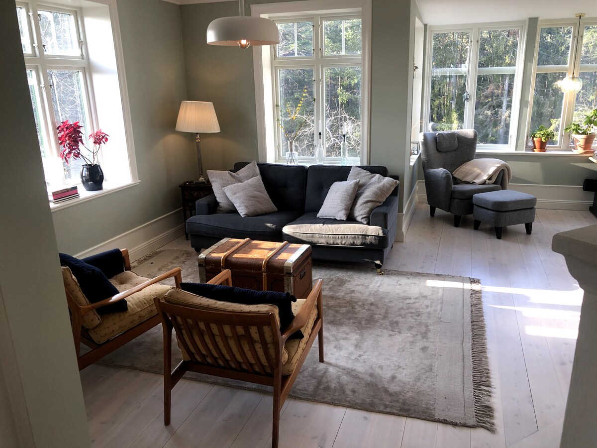 Solsidan, Saltsjöbaden. Large villa anno 1914, in the archipelago of Stockholm, in fashionable Saltsjöbaden made by famous architect Sigurd Lewerentz. 20 min from central Stockholm. 500 meter from the Baltic sea & a large nature reserve. Close to restaurants and sea bath. You can take the ferry to islands in the archipelago from Saltsjöbaden. We have kayaks to let, that you easily can roll down to the ocean.