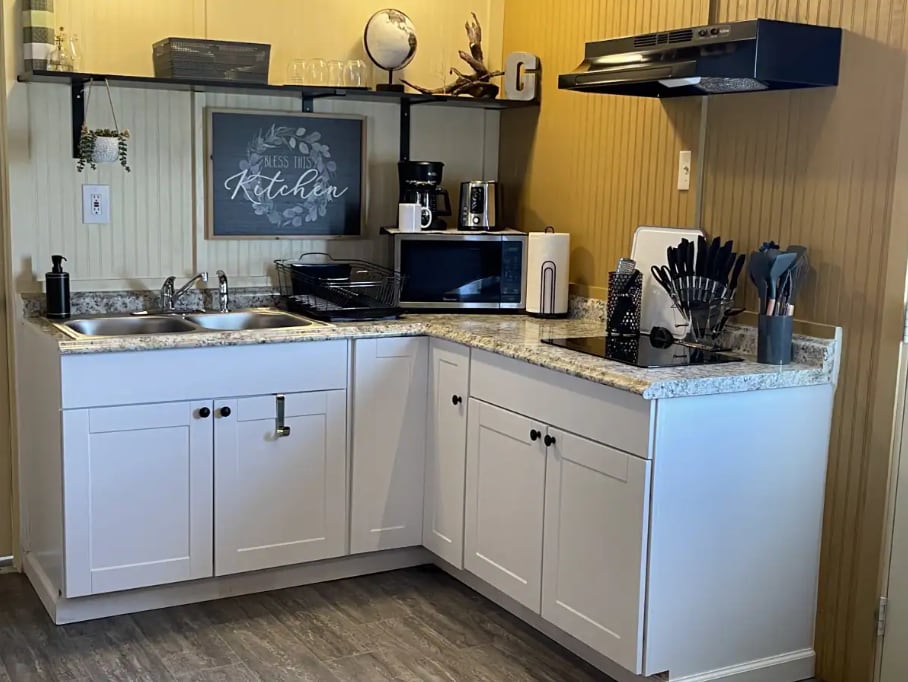 Kuća za prevoz iz 1915. godine opremljena za vašu udobnost. Bračni krevet (širine 150-179 cm), spavaća soba/kupatilo vrlo udobno: ogrtači, peškiri, sredstva za higijenu. Koliba služi kao kuhinja/trpezarija/dnevni boravak/radni prostor/kauč koji se pretvara u krevet pune veličine sa Wi-Fi mrežom / TV-om. Kupatilo/spavaća soba s bračnim krevetom, privatno dvorište. Dobro se ponašaju psi su dobrodošli, ali moraju biti sa ljudima ili smešteni kada su razdvojeni. Minisplits efikasno održava sobe toplim ili hladnim. Iznajmljivanje je odvojeno i iza glavne kuće u kojoj živim. Tenis/krastavci/klizati ulicu dalje.