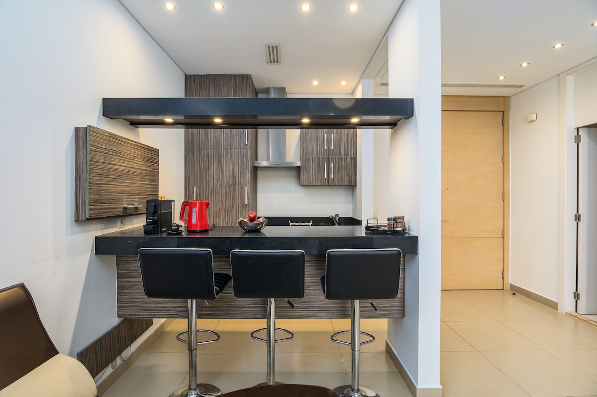 Nalazi se u živopisnom delu grada u Mar Mihaelu sa modernim restoranskim barovima, buticima i umetničkim galerijama, a sve se nalazi na potezu puta. Stan je moderan, udoban i udoban u sigurnoj i tihoj zgradi. Dostavite namirnice ili prošetajte do Grab'n' Goa odmah iza ugla. Muzej Sursok je udaljen 15 minuta hoda. Kalei, Sip Café i souk el Tayeb su su udaljeni pešice. Jednostavan pristup autoputu. 5 minuta vožnje do Badara. 8 minuta do morske arene gde možete da prošetate pored mora.