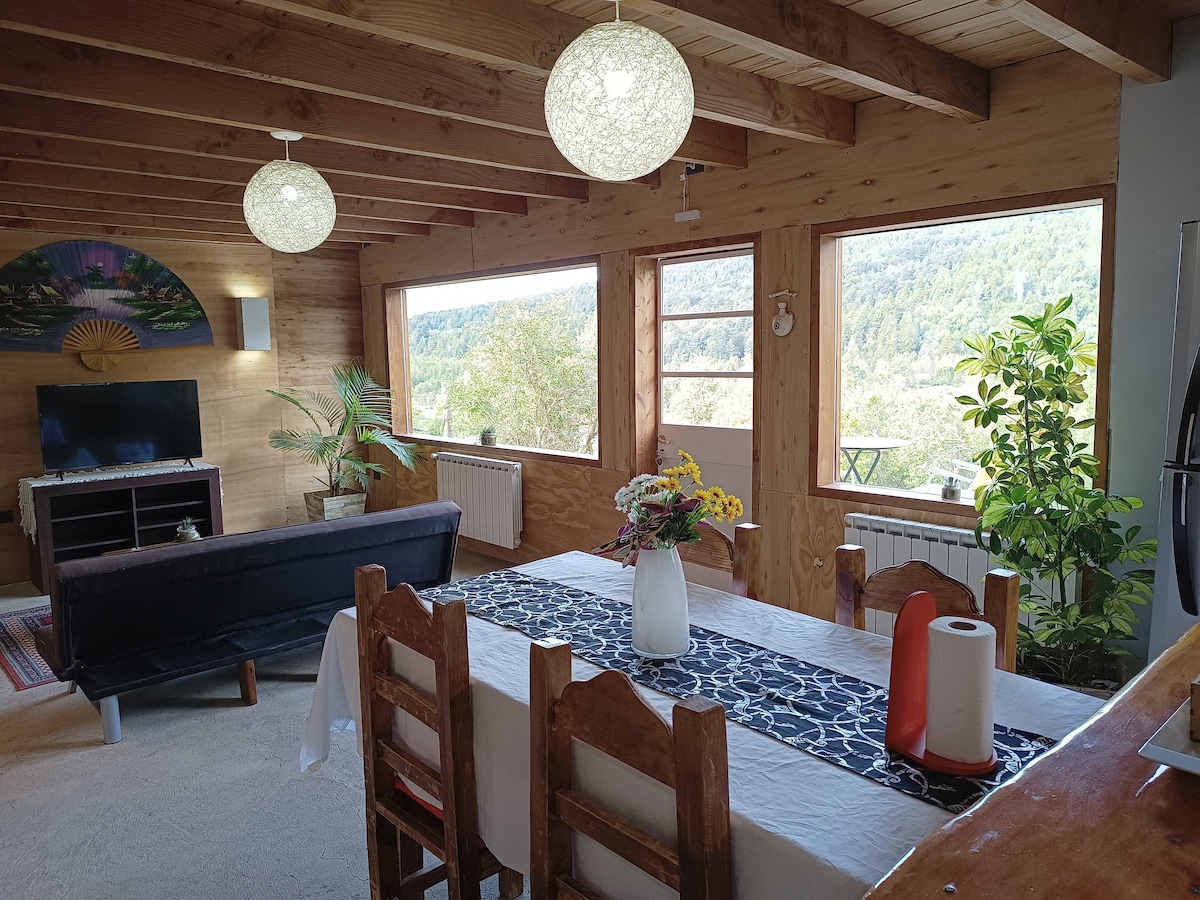 Disfrutá de una estadía íntima en esta encantadora cabaña rodeada de bosque. Cuenta con cocina completa, deck privado, baño con piedra natural y una acogedora habitación, ideal para parejas que buscan privacidad y tranquilidad. Ubicada en Circuito Chico, a minutos de Colonia Suiza, es perfecta para salir a explorar lagos, montañas y lugares típicos de la Patagonia. Al regresar, puedes utilizar Internet de alta velocidad, y continuar disfrutando de las vistas impresionantes de la naturaleza.