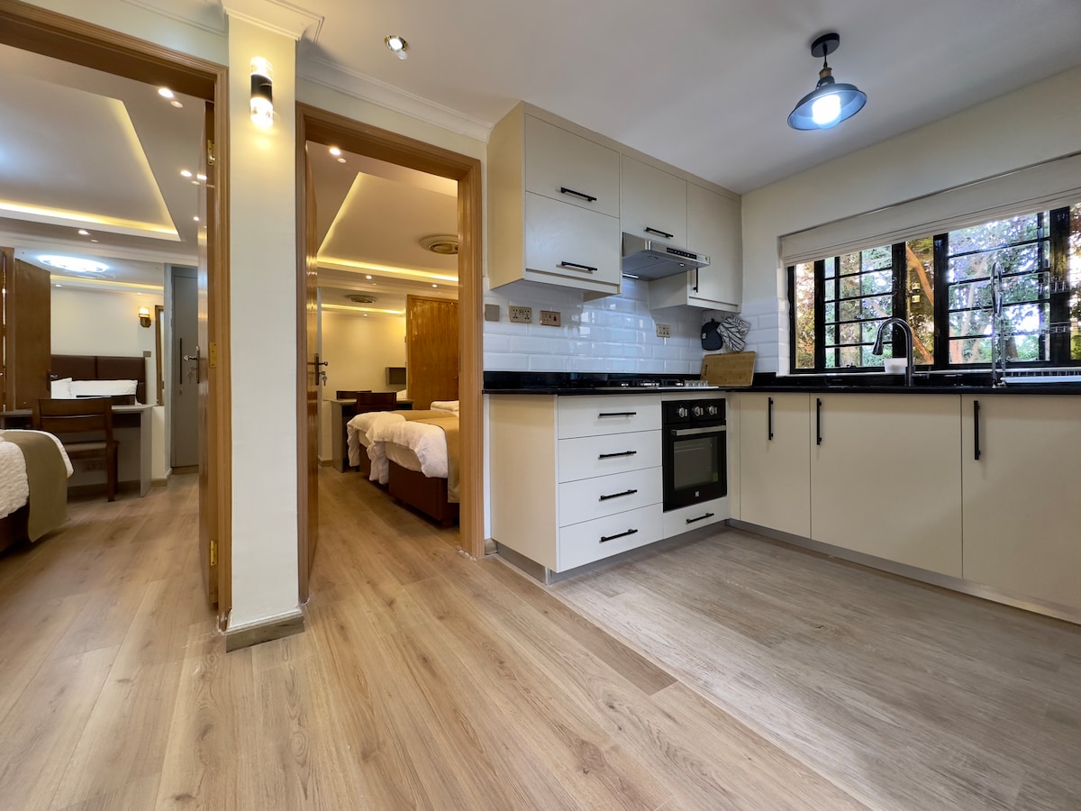 Private and quiet garden room with gazebo centrally located 5 minutes from central Karen. A hub for shopping and social activities. Ideal for a romantic get-away, or a base for those on business or safari. We have varied restaurant options in the area that offer take away and delivery. A private gazebo provides an ideal place for relaxation with abundant bird life, an electrical outlet, Wifi coverage, and fireplace. A full kitchen is provided for our guests convenience.