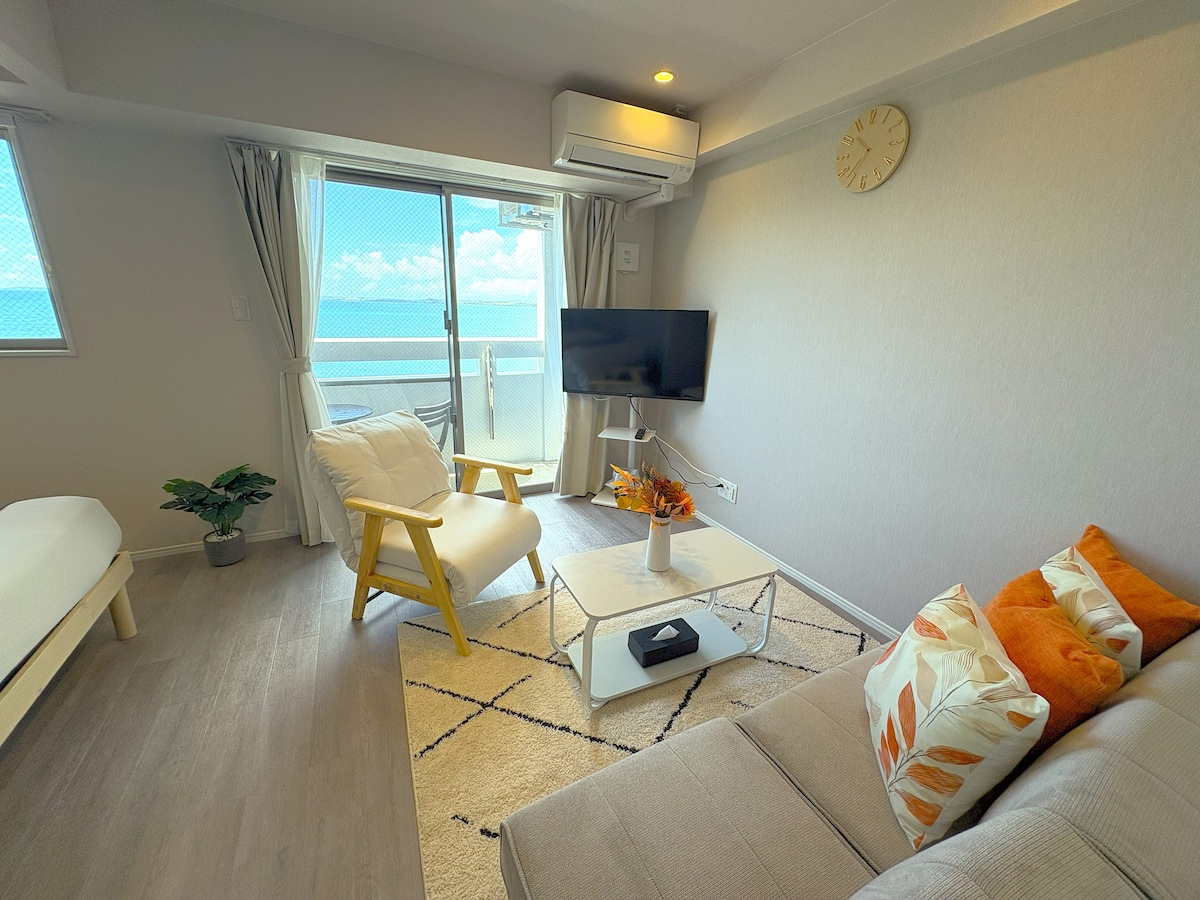 Luxury apartment ocean view! - 2 minutes walk to natural private beach! If there are more than 4 people, please contact us separately! ★ A luxurious ocean view apartment. ★ 5 minutes walk to diving spots (Blue Cave and Maeda Misasaki) ★ There is natural private beach in front of apartment. (Surfing, Snorkeling available) ★ There is no additional charge for children under 3 years old. ★ Free parking space