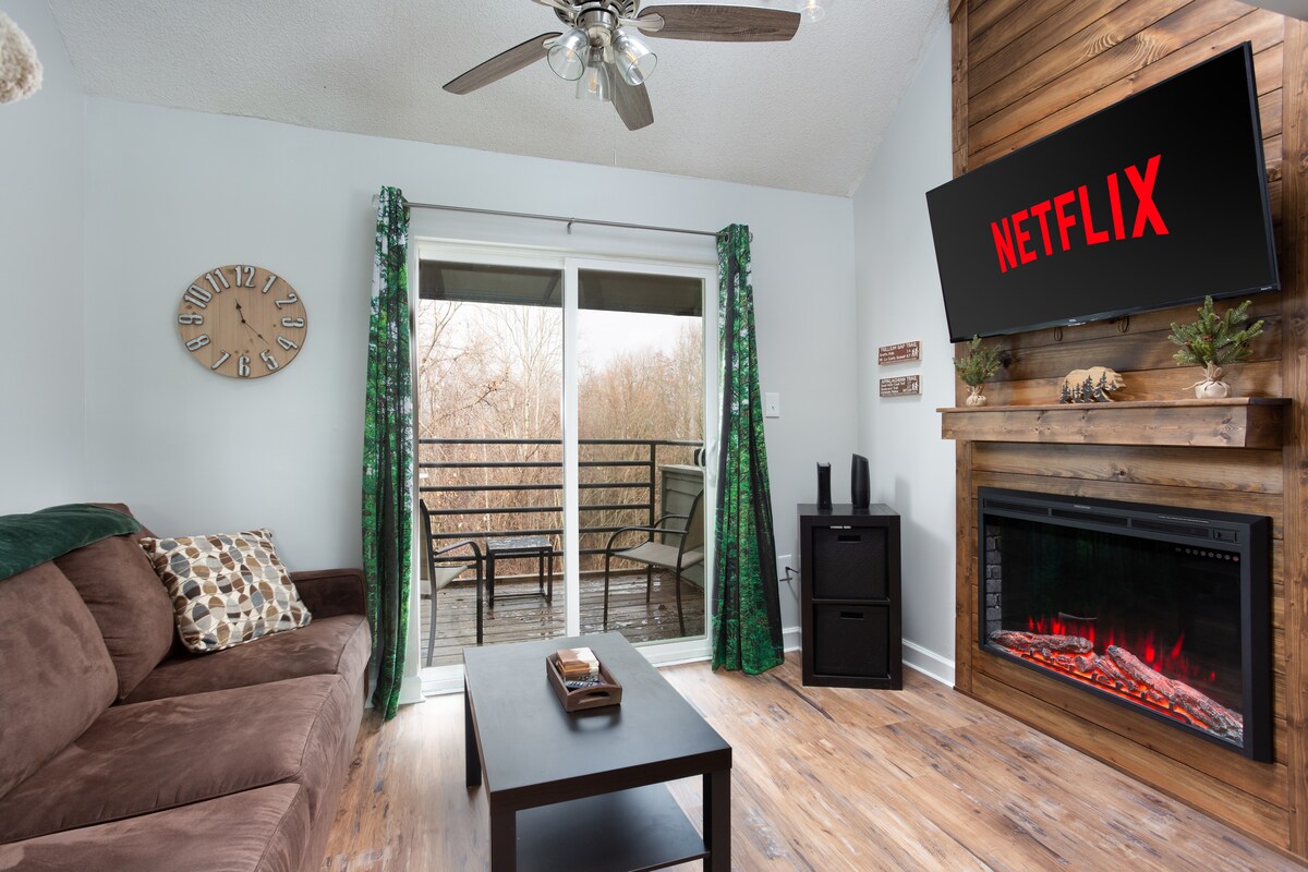 Smješten na 3.000 stopa Gatlinburg Summit Complex ima nenadmašan zadimljen pogled na planine. Naša novouređena garsonjera uključuje privatni balkon i krovni prozor u potkrovlju mirnog pogleda na dolinu. Jedinica uključuje 2 bračna kreveta, novi električni kamin, novi namještaj, radne površine od granita, moderne uređaje, BRZI privatni Wi-Fi, HD kabl i pametne televizore. Spoljašnji i unutrašnji bazen u sklopu objekta, dvije hidromasažne kade, klupska kuća, igralište i prostor za piknik/roštilj.