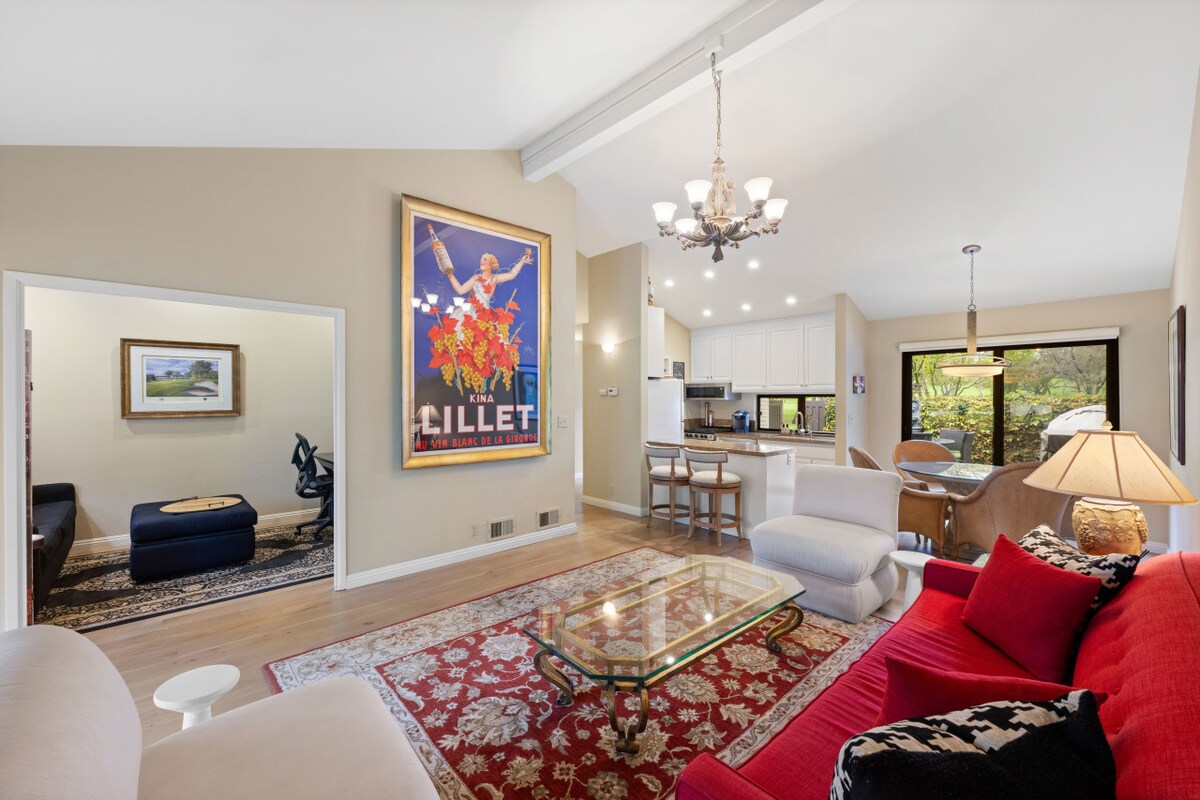 Uživajte u elegantnom boravku u zemlji vina u ovom smještaju s 3 spavaće sobe koji se nalazi u centru grada, samo 5 minuta od Sonoma Plaze. Smješten na poželjnoj istočnoj strani grada i okružen vrhunskim vinarijama, uključujući Gundlach Bundschu (najstariju porodičnu vinariju u Kaliforniji) na kraju naše mirne ulice. Izađite napolje u svoju privatnu bukoličnu oazu sa omotanom terasom, sezonskim potokom i hidromasažnom kadom gdje se možete opustiti pijuckajući lokalno vino dok jedete na otvorenom ispod stabala maslina i citrusa.