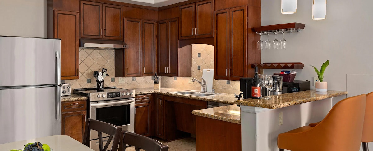 Romantični luksuzni JEDNOSOBNI luksuzni kondominijum, u sklopu prelijepog odmarališta. U blizini centra grada, ali ušuškan radi mira. Uživajte u svom unutrašnjem sommelieru u ovom odmaralištu Napa Valley s pogledom na valovite vinograde. Mirno utočište u srcu kalifornijske vinske zemlje, dolina Napa poznata je širom sveta po najboljim vinima u Severnoj Americi. Mnoge od najcjenjenijih vinarija u ovom području udaljene su samo nekoliko minuta vožnje, a konsijerž je spreman da organizuje vaš degustacioni obilazak.