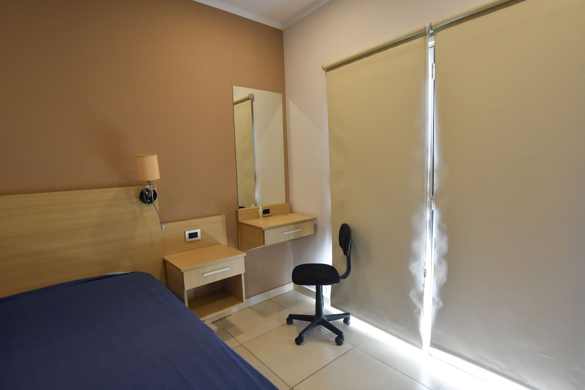 Departamento moderno y luminoso en pleno centro de Sáenz Peña. Ubicación inmejorable, a pasos de restaurantes, supermercados, bancos, farmacias y principales puntos de la ciudad. El espacio es cómodo y funcional, con cocina equipada, living acogedor, aire acondicionado y Wi-Fi. Ideal para viajes de trabajo o descanso, con todo lo necesario para una estadía práctica, confortable y sin complicaciones, en el corazón de la ciudad.