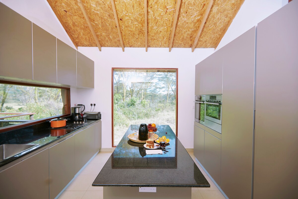 Uživajte u čarobnim zvucima prirode dok boravite u ovom jedinstvenom smještaju. Ekskluzivna postavka za samo jednu grupu gostiju istovremeno. Inkluzivno čišćenje i fini sadržaji. Obroci se pružaju na zahtjev uz naknadu ili uslugu kuvanja. Luksuzno glampovanje s pogledom na planine i jezero Naivaša, unutar koridora divljih životinja sa nevjerovatnim životom ptica. Okruženi prelijepim konjima. Ako budete imali sreće, vidjećete žirafe, zebre, Impale i druge divlje životinje koje dolaze uveče i noću. Karibu