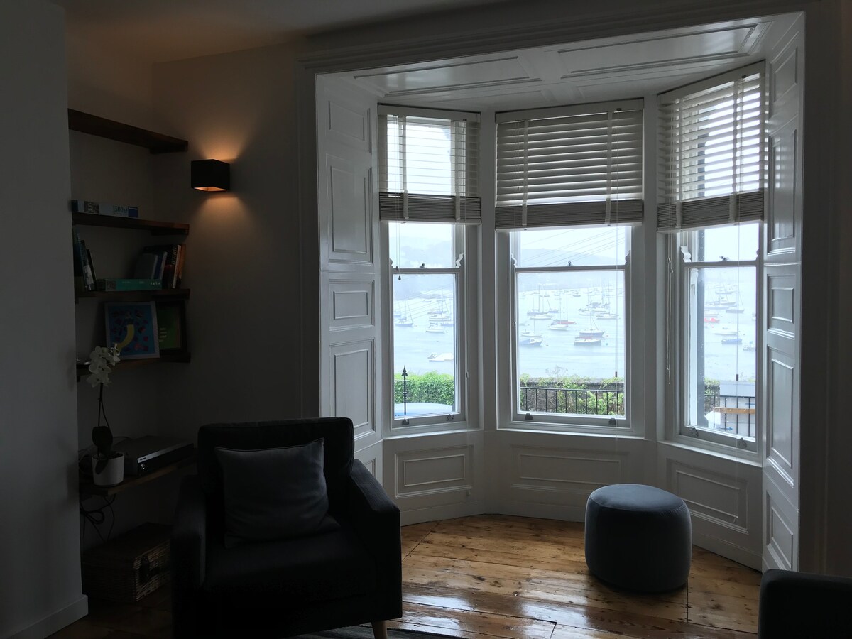 Predivan prozračan gruzijski stan u vili 2. razreda s pogledom na luku u srcu prelijepog Falmutu. Sve je na laganoj pješačkoj udaljenosti, tako da vam neće trebati automobil: Trg događaja i stotine odličnih restorana i prodavnica su udaljeni svega nekoliko minuta! Jedna mala napomena, u blizini se nalazi pivnica, to je rijetkost, ali može biti buke. Obično je problem samo ako pokušavate da spavate s otvorenim prozorima.