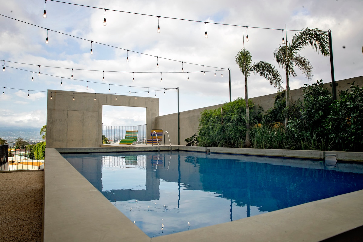 Apartman u potkrovlju u Escazúu, pogled na bazen sa grijanim gradom!