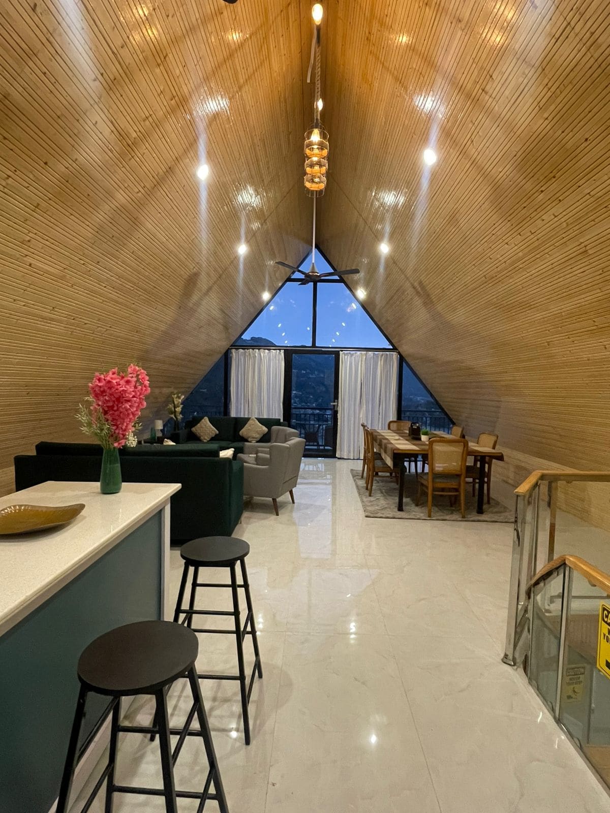 Escape to Serenity: Exquisite A-Frame Villa by Bhimtal Lake Zamislite da se probudite uz prekrasan pogled na jezero Bhimtal, okruženo spokojem prirode. Unutar vašeg utočišta: • Prostrane spavaće sobe: Dvije prostrane spavaće sobe, svaka sa zasebnim kupatilom, pružaju savršen spoj udobnosti i privatnosti. • Moderni sadržaji: Potpuno opremljena kuhinja i otvoreni dnevni boravak i trpezarija bez problema spajaju unutrašnje i spoljašnje prostore, savršene za opuštanje i zabavu.