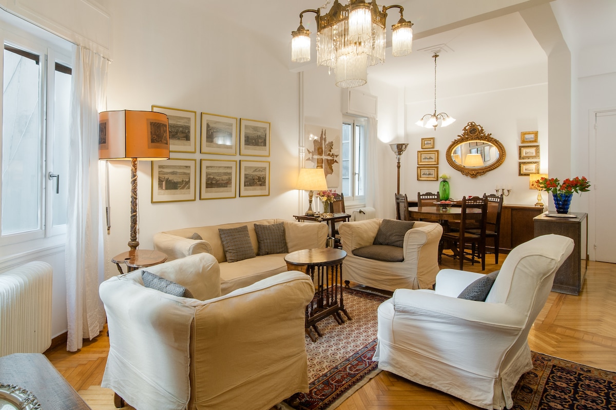 The elegant and beautiful apartment is situated in the heart of Athens in a quiet part of Kolonaki, around the corner of the Benaki Museum. Kolonaki is a very conveniant, central and beautiful area of Athens. It is very tastefully furnished with some old, nice pieces of furniture, paintings, prints and objects.