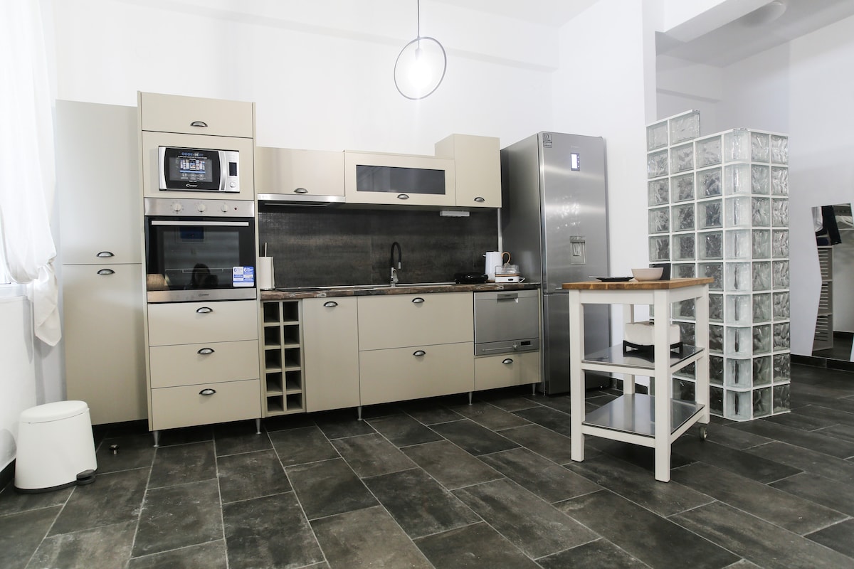 Our unique apartment is located on the second floor of a dreamy house in Epanomi. It is a 3' car ride from the beach, in a quiet neighborhood. You will enjoy the view of Olympus mountain, the sea and the sunset! A super comfy bed, a cozy sofa bed for two, a beautifully designed space with a jacuzzi, a huge balcony, an amazing garden and barbecue, safe parking, are some of the amenities. Epanomi is very closed to Thessaliniki and Makedonia airport!