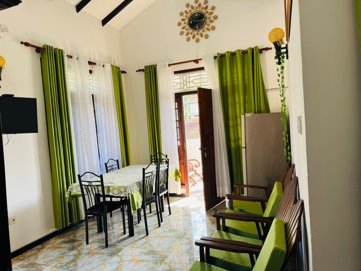 Doživite luksuz u butik stilu u ovom prelepom arhitektonski dizajniranom domu udaljenom samo 15 minuta od aerodroma. Uživajte u elegantnoj dvokrevetnoj spavaćoj sobi, elegantnom dnevnom boravku sa modernim udobnim prostorom za sedenje, trpezariji, kuhinji, modernom kupatilu i mirnoj bašti. U mirnom području, a samo 5 minuta od grada Negombo, plaže, restorana i prodavnica. Ovaj prostrani smeštaj sa Wi-Fi mrežom i klima-uređajem je idealan za parove, prijatelje ili samostalne putnike koji traže udobnost, privatnost, praktičnost i zaista opuštajući boravak.