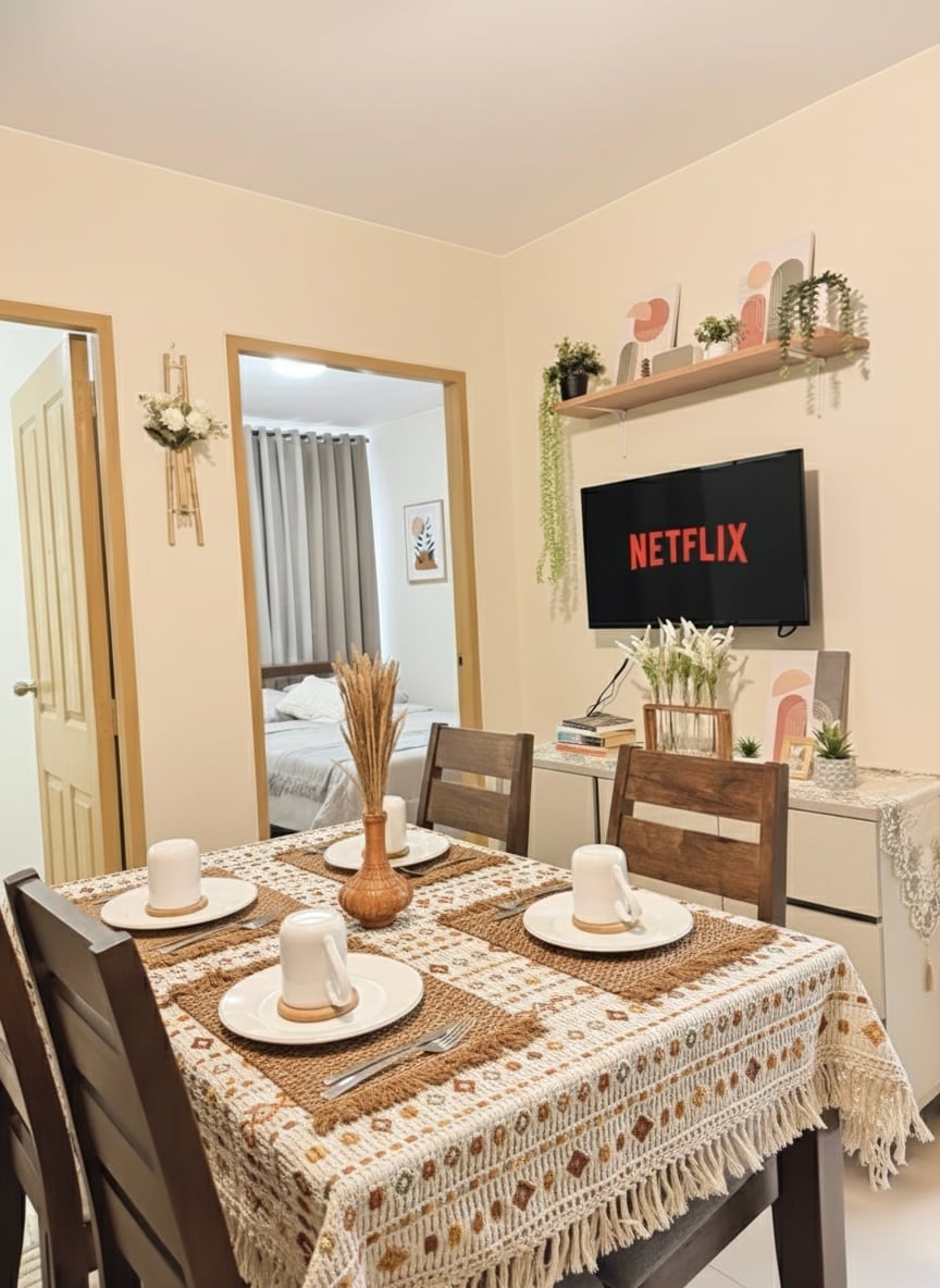 Svetla i udobna garsonjera sa pogledom na more u Marini Spatial Dumaguete. Savršeno za porodice i male grupe. Jedinica ima 2 udobne spavaće sobe, klima-uređaj, brz Wi-Fi, potpuno opremljenu kuhinju, trpezariju i opuštajući dnevni boravak. Izađite napolje i bićete na samo nekoliko minuta od Bulevara Rizal, kafića, restorana, tržnih centara i luke za laka putovanja na ostrvo. Udoban i praktičan smeštaj dok istražujete Dumaguete i obližnje atrakcije.