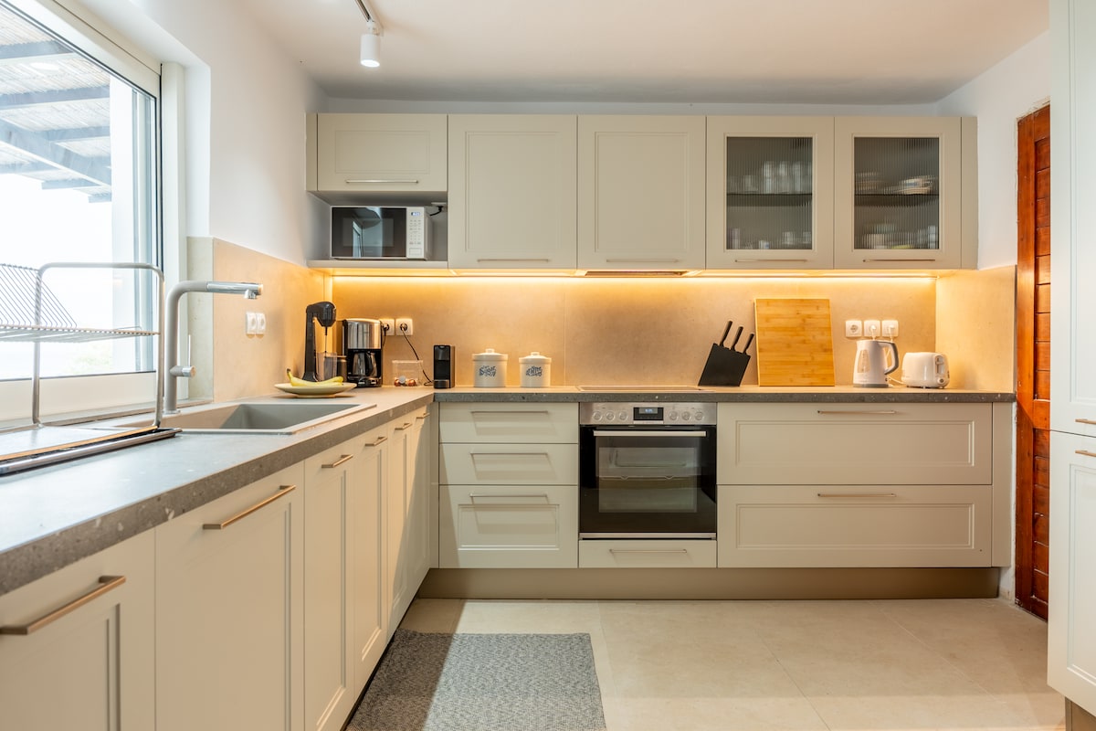 Built on a hub of the seaside settlement, our comfortable and practical accommodation offers a magnificent panoramic view on every corner. The communal elevated pier offers the unique sea and mountain views where you can enjoy your breakfast and the afternoon sunset. The beach is only a 3-5min walk away, while our guests are free to use the marine equipment we provide.