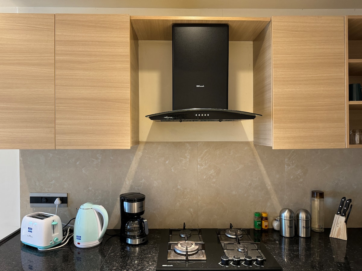 Odsjednite u luksuzu u našem potpuno namještenom stanu 1BHK, koji nudi udobnu spavaću sobu, dva kupatila (jedna povezana spavaća soba, jedno zajedničko ) i potpuno funkcionalnu kuhinju s kućanskim aparatima i osnovnim priborom za kuvanje. Opustite se u prostranom dnevnom boravku s velikim pametnim televizorom i elegantnim dizajnom enterijera. Uživajte u luksuznom namještaju koji stvara dom daleko od doma. Savršen i za kraće i za duže boravke, ovaj stan obećava udobnost i praktičnost na vrhunskoj gradskoj lokaciji. Rezervišite smještaj za izvanredan boravak!