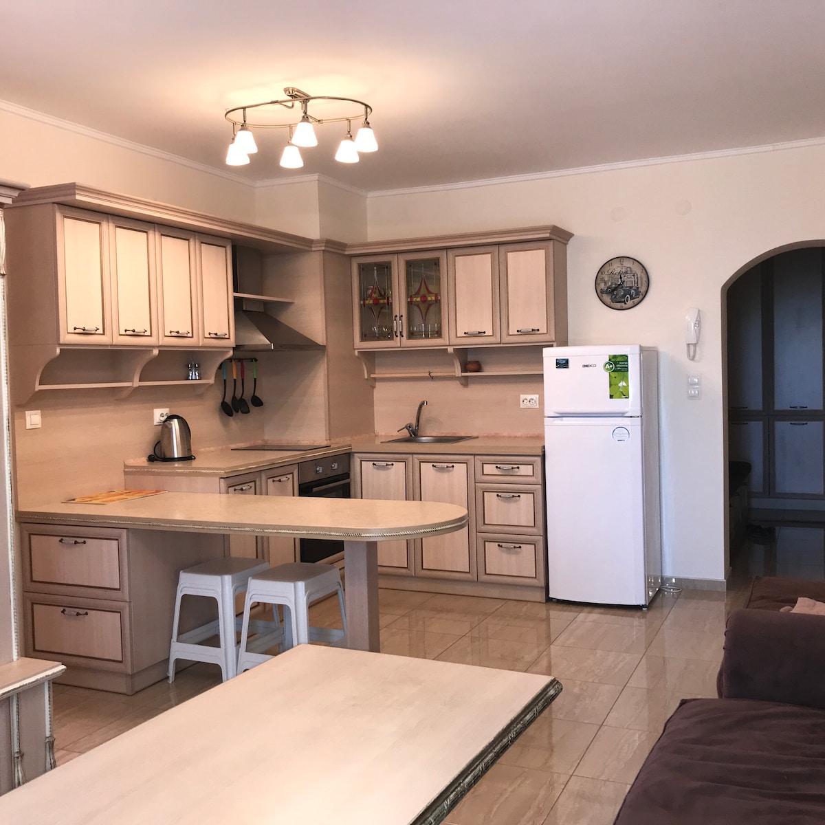 Opustite se sa cijelom porodicom u ovom mirnom smještaju smještenom u slikovitom Starom gradu Nessebaru koji je na popisu Uneska, naš prostrani stan sa privatnom kuhinjom savršena je destinacija za parove i porodice koji traže nezaboravan odmor sa daškom istorije. Probudite se uz umirujući zvuk talasa i pogled na azurno more koje se proteže do horizonta. Na korak ste od autentičnih restorana, prodavnica i lokalne plaže.