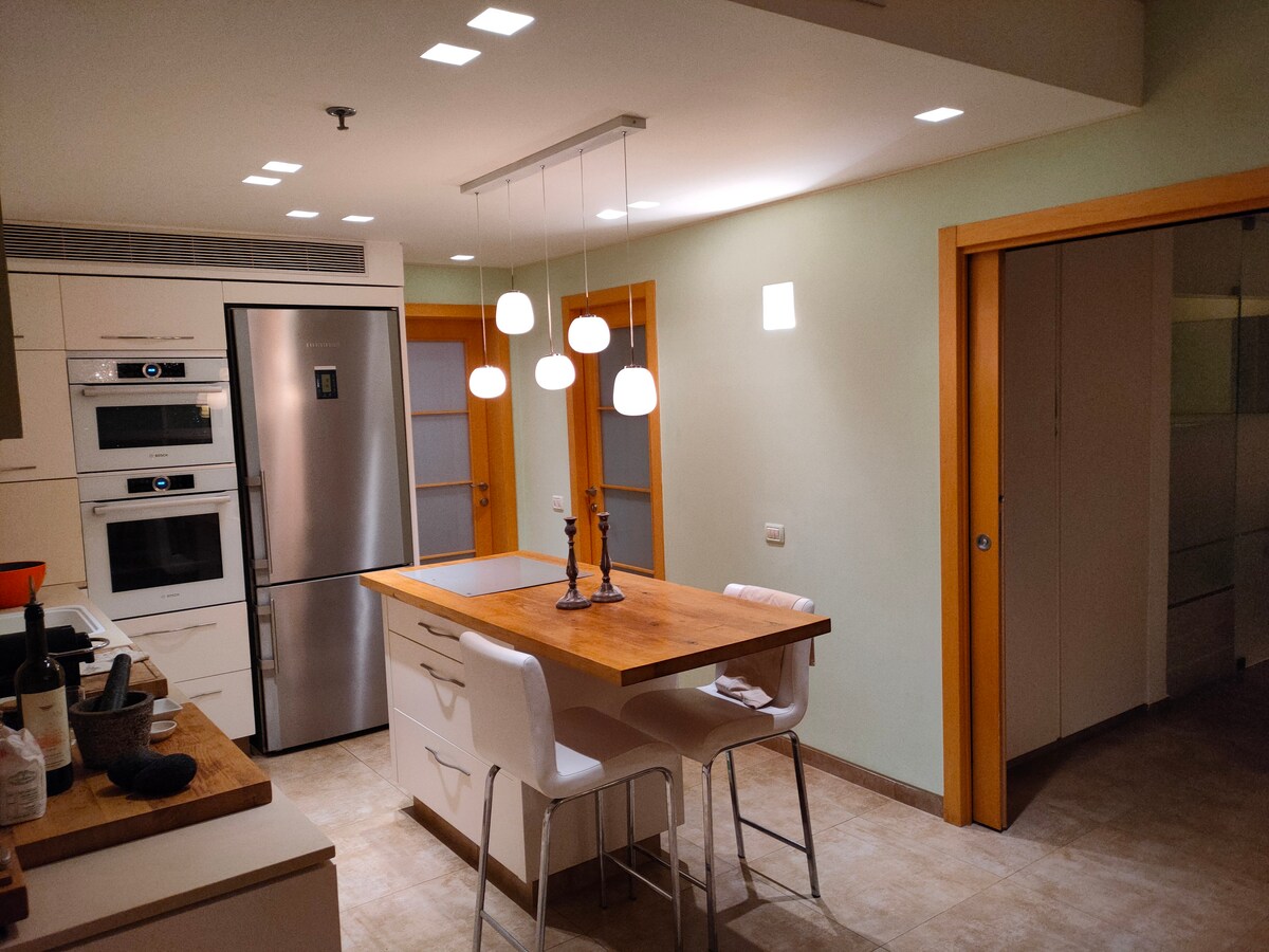 Prekrasan arhitektonski uređen stan. Stan je namješten i opremljen Luksuzna kuhinja, aparat za kafu, Tami 4, veoma veliki frižider 1,20 , rerna, mikrotalasna rerna, šporet i još mnogo toga Stan ima 4 spavaće sobe, 2 tuša, 2 toaleta. Postoji bojler i rešo za šabat. Savršen stan za savršen odmor Stan je udaljen 3 minuta hoda od mora, restorana, kafića i šetališta. Blizu komercijalnog područja i noćnog života Bat Yama. 10 min. vožnje od Mapoa i Tel Aviva . U krugu od 1 minuta hoda nalazi se supermarket, bankomat, frizer, prodavnica pića, perionica veša.
