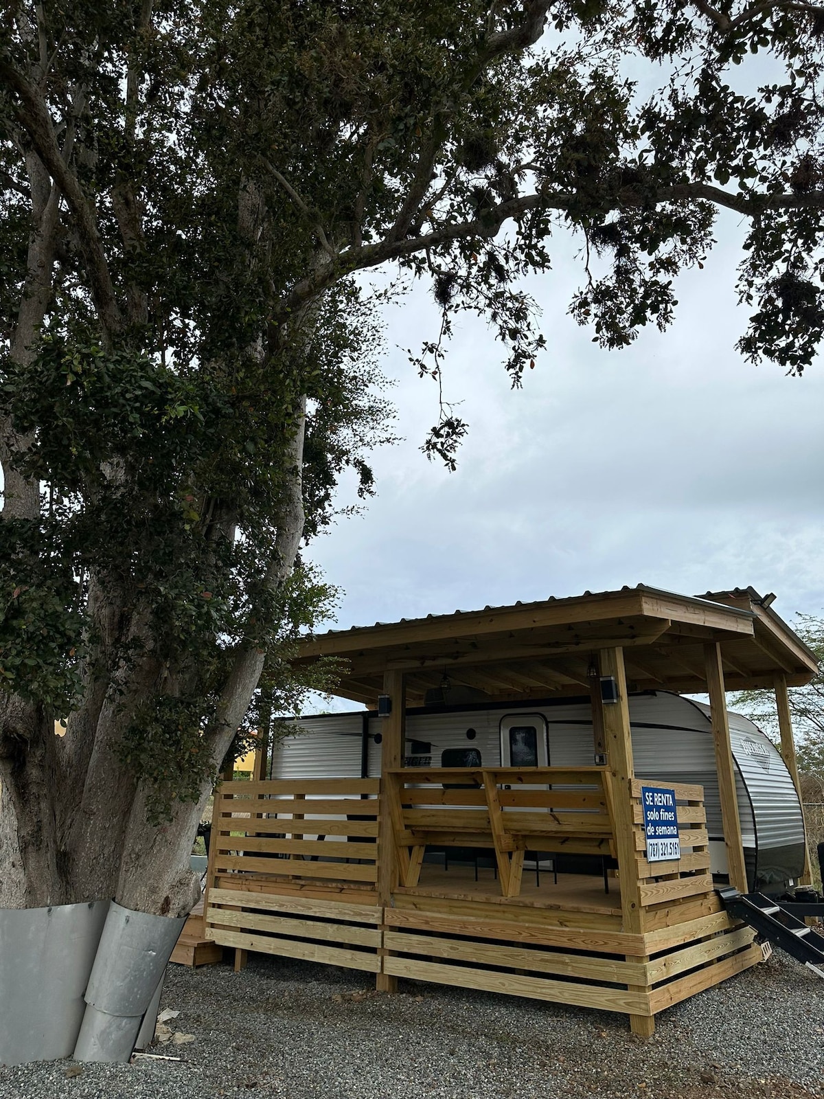 Ubicado a 3 minutos del centro el Poblado de La Parguera, Lajas , éste trailer acomoda a 4 personas y cuenta con 2 A/C inverter en su interior. En su exterior tiene una espaciosa área de estar que incluye sala, comedor, TV y baño. Tendrás todo lo esencial para tu estadía