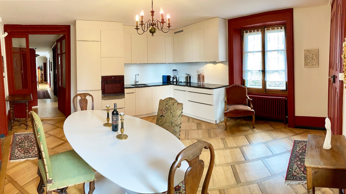 Welcome to our large apartment right in the centre of Neuchatel (pedestrian street). There is a lot of light entering the apartment, very warm during winter and cool during summer. Walking distance from the train station (7 mins), bus stops (1 min), parking (1 min), supermarkets (1 min).
