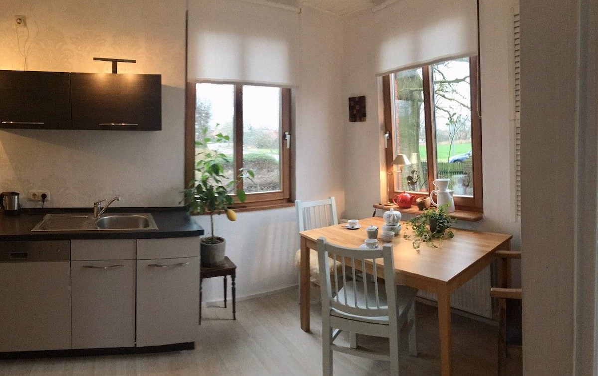 Uživajte u suncu i obali Severnog mora u prelepom apartmanu za odmor 15 minuta od obale. Spavaća soba (bračni krevet+ krevet za jednu osobu), tuš i velika kuhinja mogu da se smeste. Dnevni boravak je opremljen TV-om. Privatna terasa i mala, ograđena bašta nude prostor za roštiljanje i odmor. Objekti za kupovinu su u sledećem selu (5 minuta automobilom). Schooer Wald i brojne biciklističke staze vas pozivaju na vožnju biciklom i šetnju. (plus naknada za završno čišćenje)