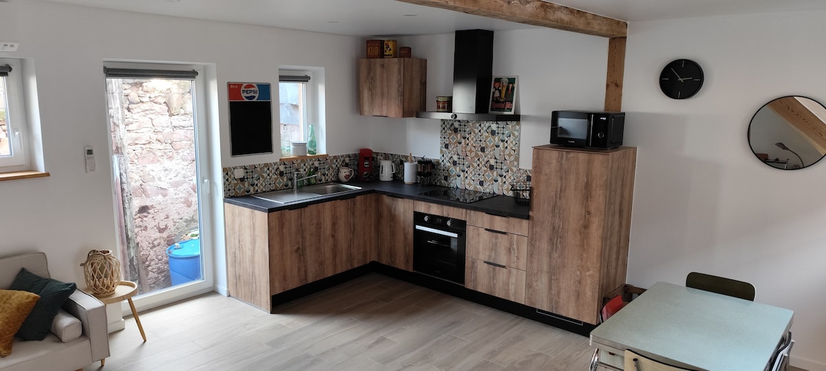 Mali studio od 25 m² za 2 osobe, idealno se nalazi u Regionalnom parku prirode Northern Vosges (pješačenje), raznim kulturnim znamenitostima ( muzeji, istorijske znamenitosti itd.) i velikim gradovima (Saverne 10 km, Haguenau 30 km, Strazbur 50 km). Uključuje potpuno opremljenu kuhinju, kupatilo, trpezariju, prostor za spavanje i terasu.